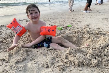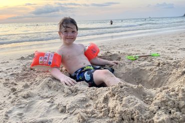 Gestern haben wir einen weiteren Tag am Strand verbracht. Bei diesen Temperaturen hält man sich am besten im Wasser auf… egal ob Pool oder Strand, Hauptsache Wasser…