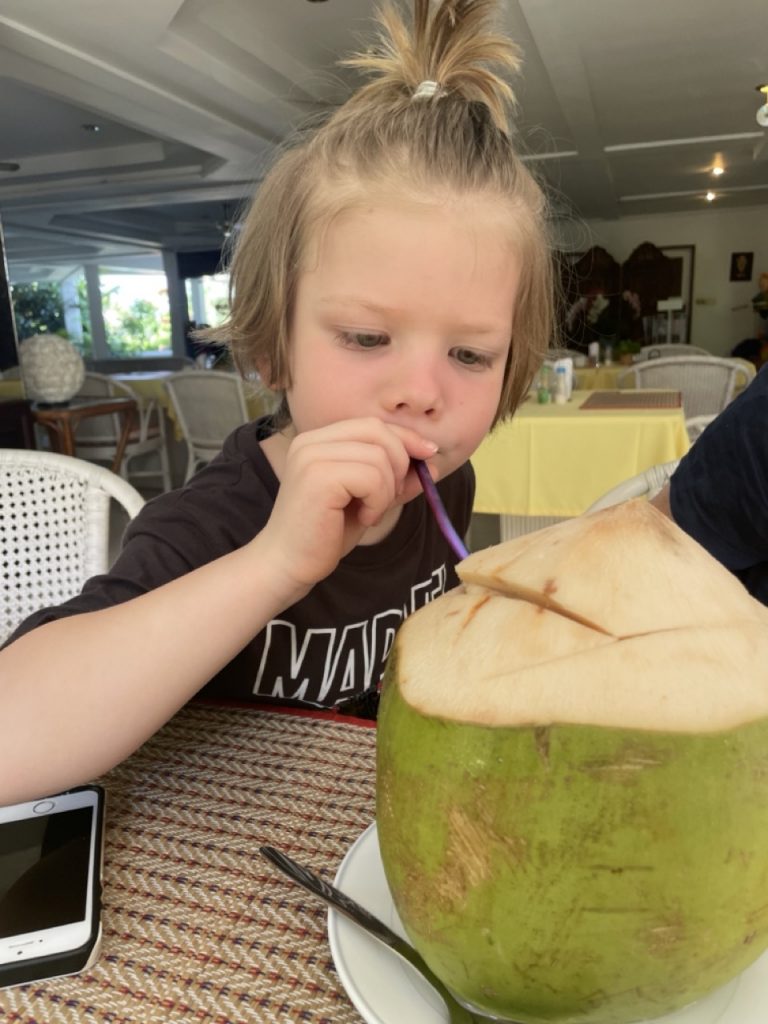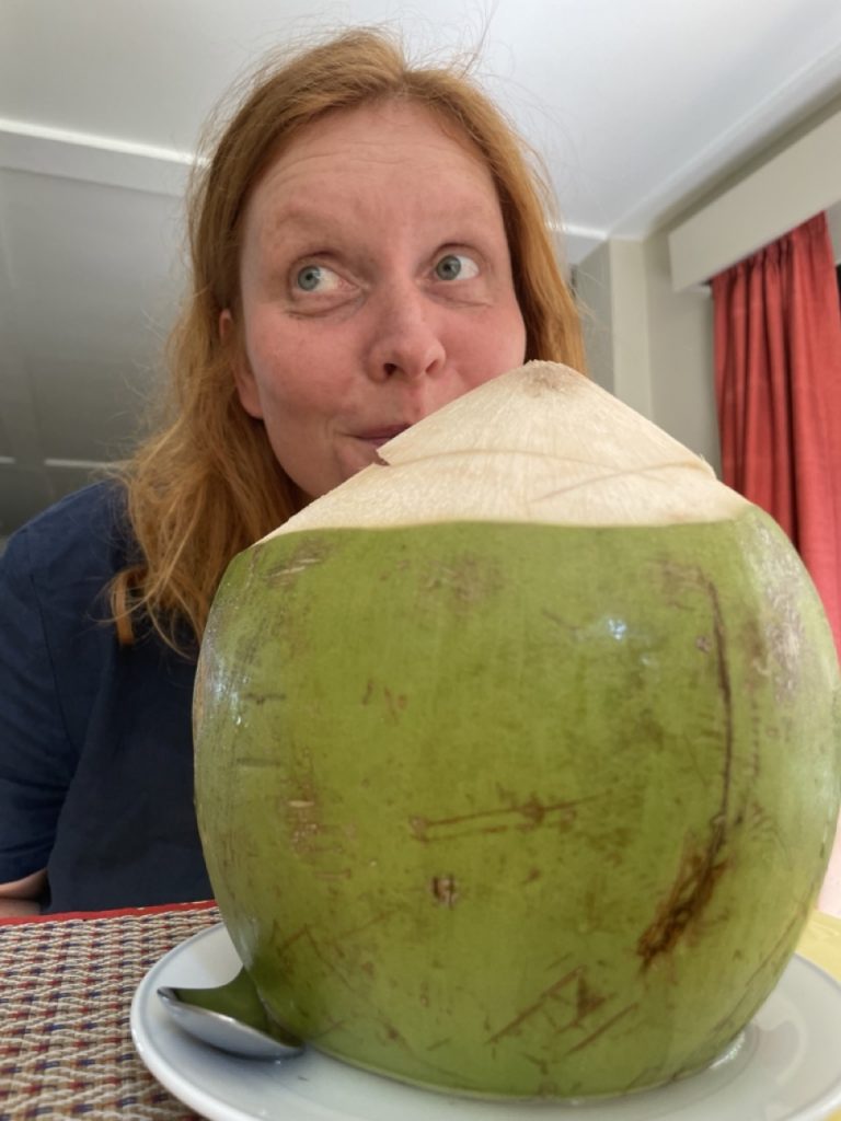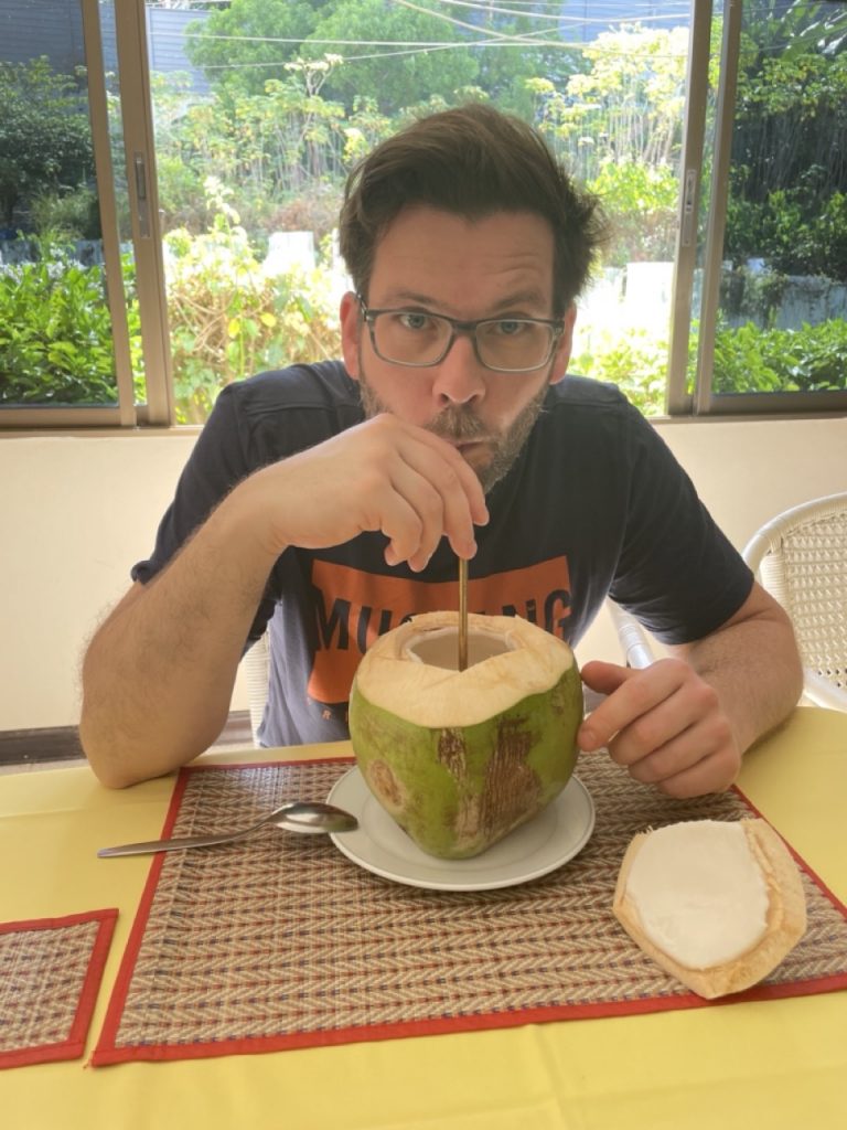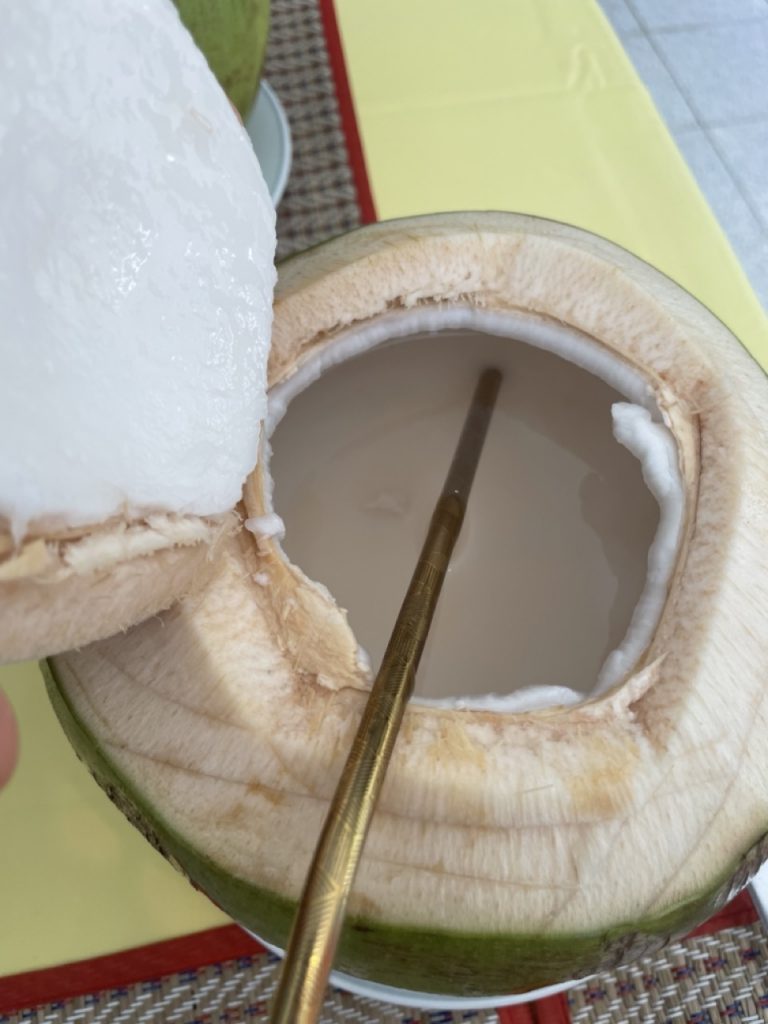 Gestern kamen wir erst gegen 0Uhr zur Ruhe… es ist doch erstaunlich wie stark die „innere“ Uhr tickt… heute Morgen hat uns Wendy über die „reinigende“ Kraft von Kokosnusssaft aufgeklärt, so dass wir nicht daran vorbeigekommen sind, dass mal zu probieren: Und es hat nichts mit dem zu tun, was wir bisher über die Kokosnuss wussten und es war somit ein erfreuliches Erlebnis, selbst für jemanden wie mich, der sonst vor dieser Frucht stiften geht.