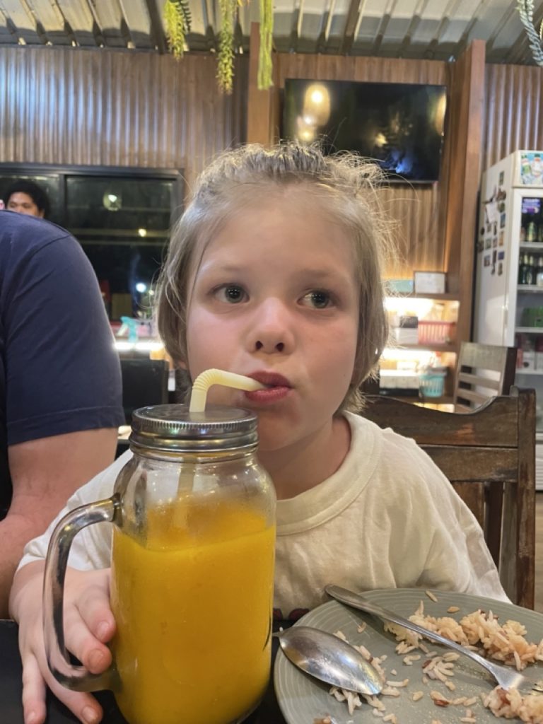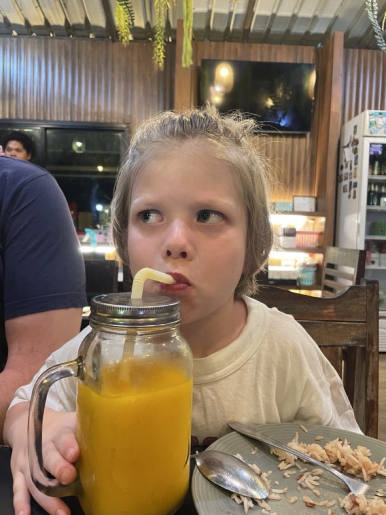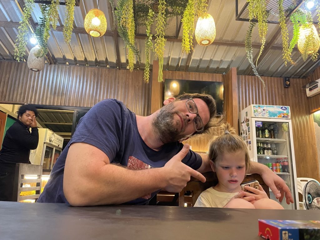 Während wir auf das Essen warteten, hat Willi einen neuen Rekord bei Snake aufgestellt… danach legte er erstmal eine Pause ein. Ganz schön anstrengend so ein Kinderleben!