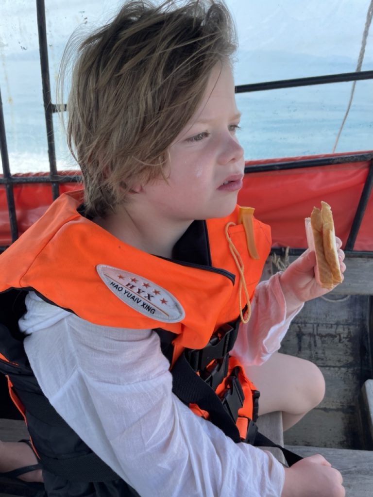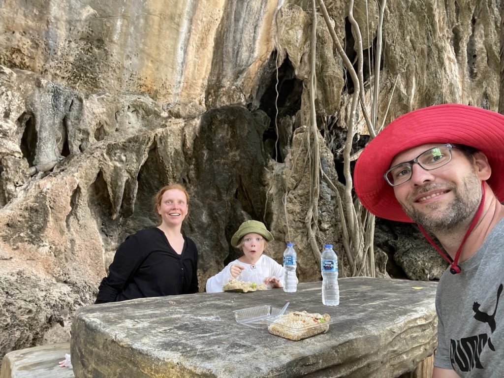Auf dem Weg gab es eine kleine Stärkung. Auf der Insel selbst gab es dann eine ausgedehnte Essenpause, aber keine Pause für die staunenden Augen. Willi hat auch jede Höhle dort direkt inspiziert.