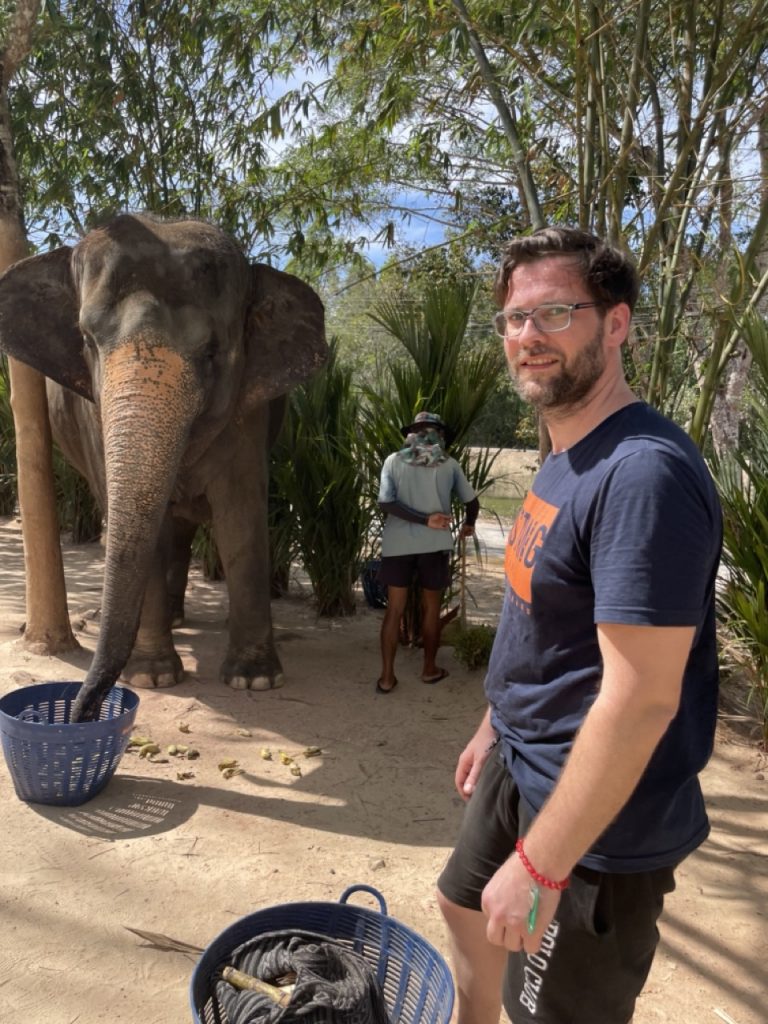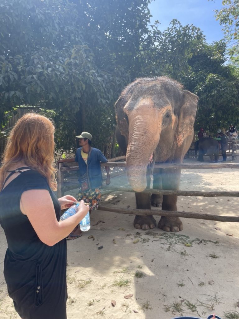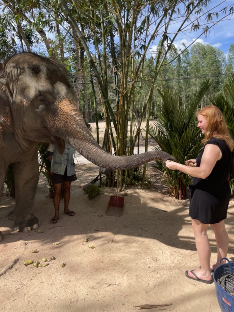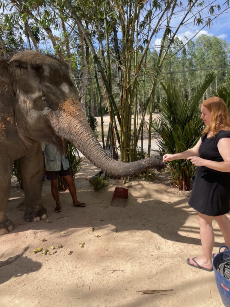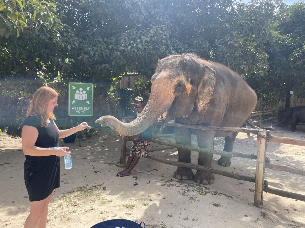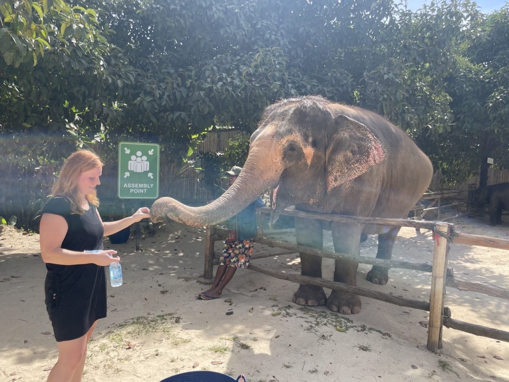 Es war sehr beeindruckend zwischen den Elefanten zu stehen. Durch ihre Größe und Anmut hält man doch am Anfang einen respektablen Abstand ein. Sie haben einen kräftigen Rüssel, was man direkt spürt, wenn sie einem das Futter abnehmen. Sie haben sehr liebe Augen und ihr Erscheinungsbild ist überaus freundlich.