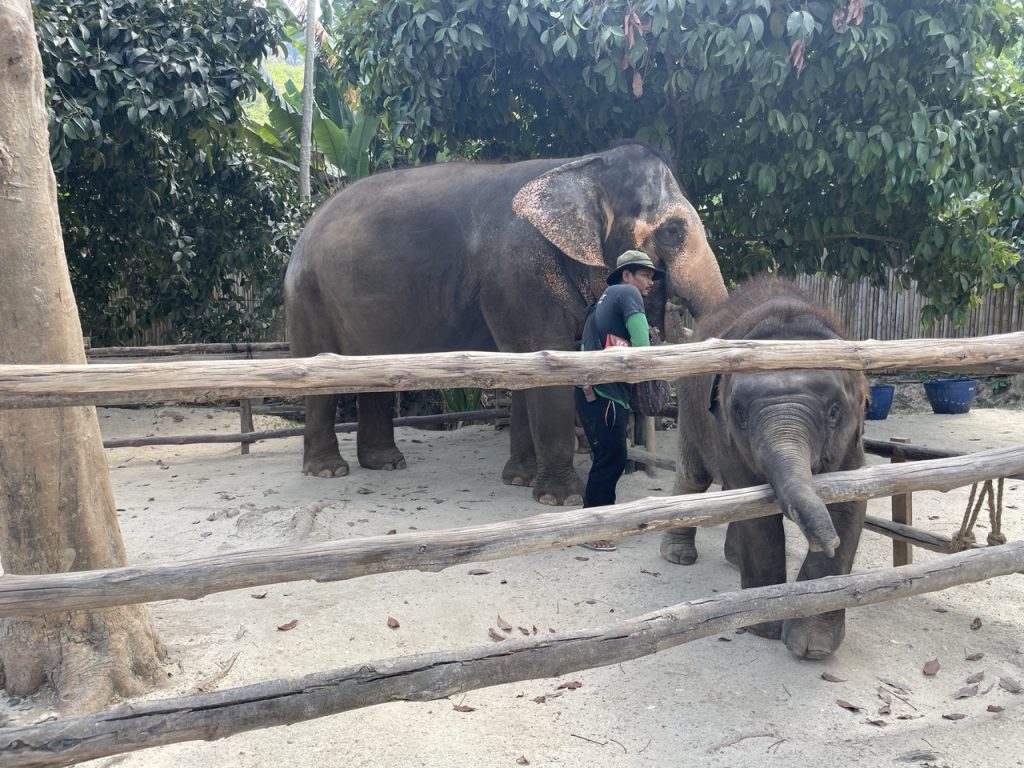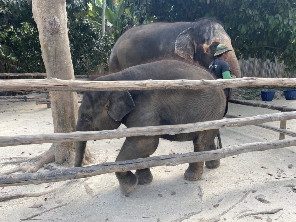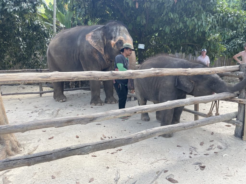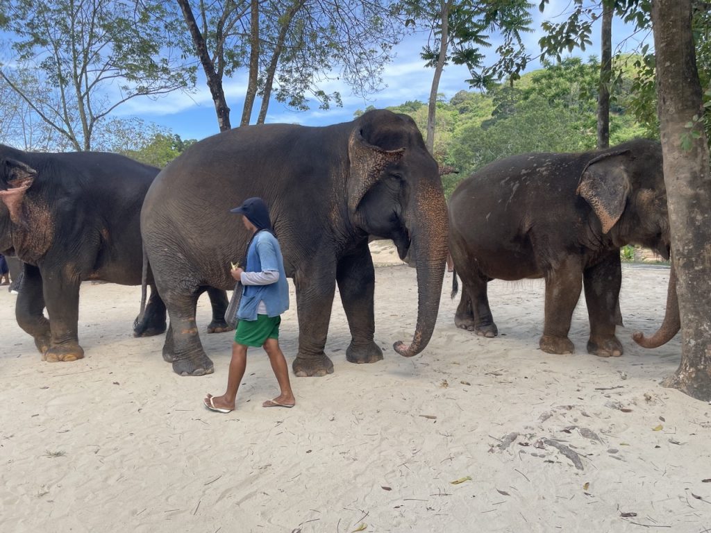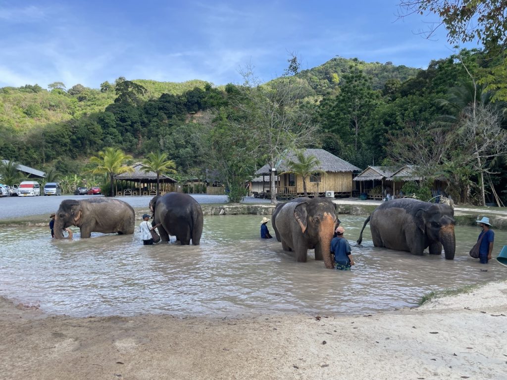 Aktuell leben im Park 14 Elefanten und jeder von ihnen hat eine eigene teilweise sehr tragische Geschichte. Jedem Elefant steht ein Pfleger, der sogenannte „Mahout“, zur Seite. In der thailändischen Geschichte spielen Elefanten eine sehr große Rolle und wurden lange Zeit als Arbeitstier beim Roden von Wäldern eingesetzt. Mit dem Rückgang der Wälder sowie den Rodungsstop durch die Regierung, gab es dort immer weniger zu tun und die Mahouts begannen die Elefanten im Tourismusbereich einzusetzen. Leider wurden nicht alle Tiere artgerecht behandelt und u.a. auch zum Reiten benutzt. Mittlerweile gibt es Parks wir den Green Elephant Sanctuary Park, wo die Elefanten ein besseres Leben führen und die Kosten für ihr Futter sowie ihre Mahouts ebenfalls von Touristen finanziert werden, aber eben ohne Reiten oder andere „Kunststückchen“. Glücklicherweise werden diese Elefanten zur Nacht auch nicht angekettet, sondern in einem geräumigen Gehege untergebracht.