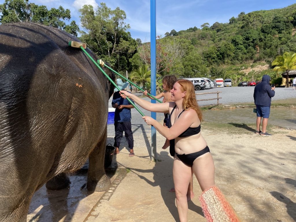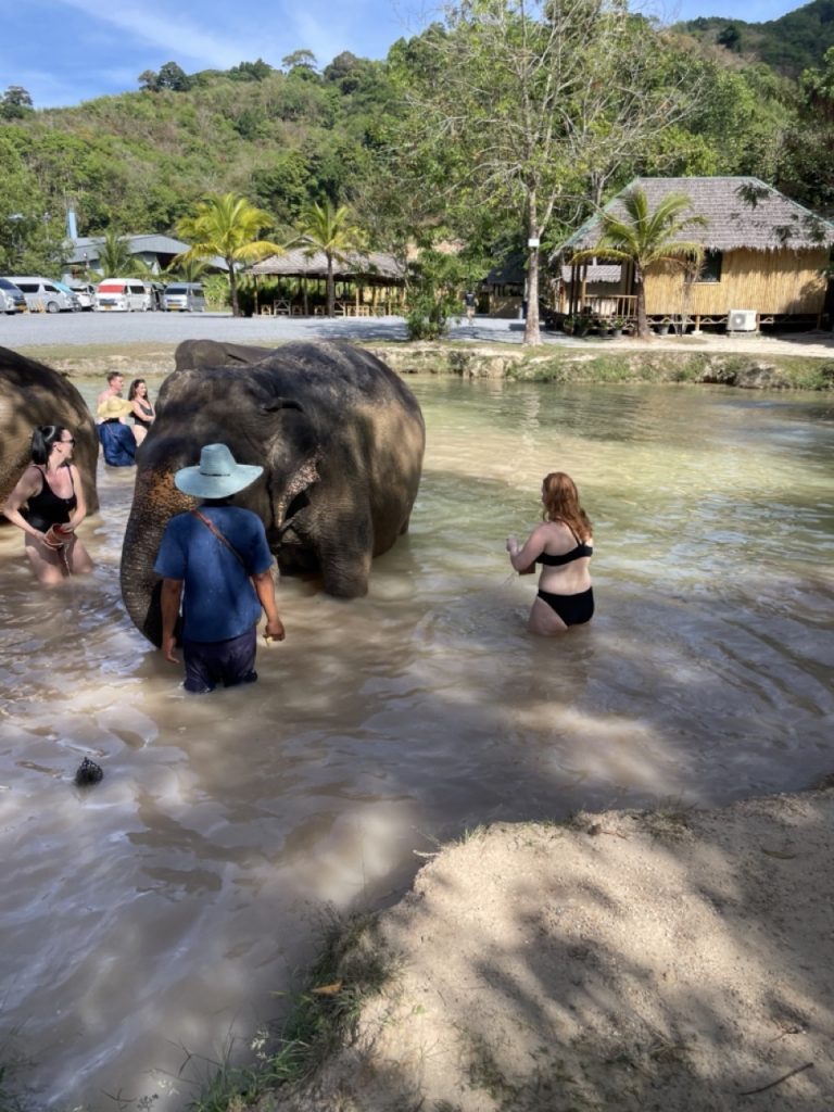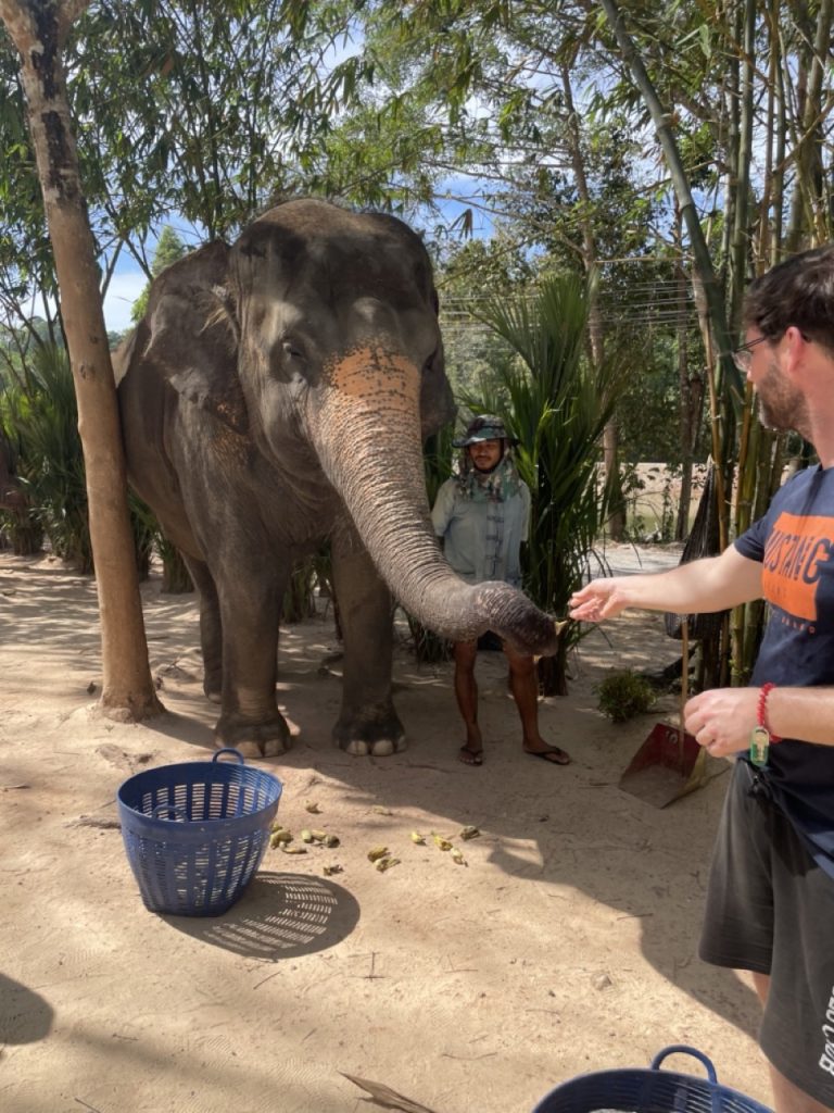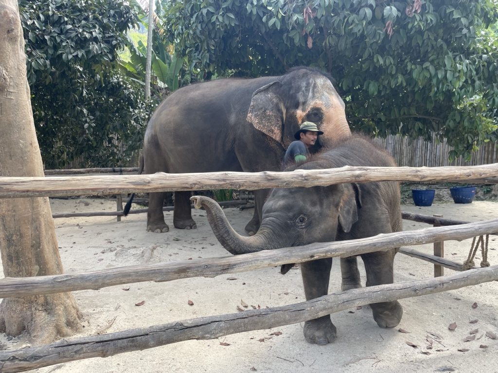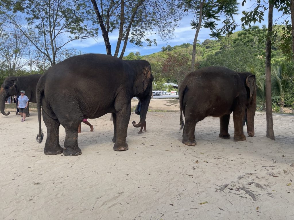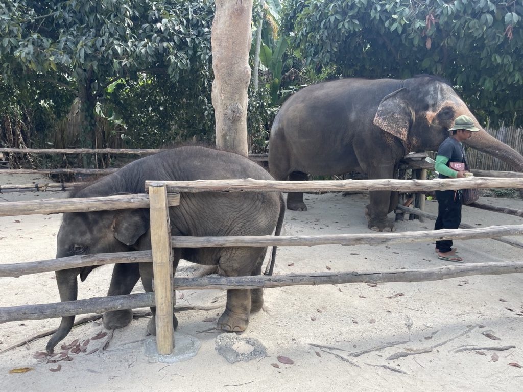 Aktuell leben im Park 14 Elefanten und jeder von ihnen hat eine eigene teilweise sehr tragische Geschichte. Jedem Elefant steht ein Pfleger, der sogenannte „Mahout“, zur Seite. In der thailändischen Geschichte spielen Elefanten eine sehr große Rolle und wurden lange Zeit als Arbeitstier beim Roden von Wäldern eingesetzt. Mit dem Rückgang der Wälder sowie den Rodungsstop durch die Regierung, gab es dort immer weniger zu tun und die Mahouts begannen die Elefanten im Tourismusbereich einzusetzen. Leider wurden nicht alle Tiere artgerecht behandelt und u.a. auch zum Reiten benutzt. Mittlerweile gibt es Parks wir den Green Elephant Sanctuary Park, wo die Elefanten ein besseres Leben führen und die Kosten für ihr Futter sowie ihre Mahouts ebenfalls von Touristen finanziert werden, aber eben ohne Reiten oder andere „Kunststückchen“. Glücklicherweise werden diese Elefanten zur Nacht auch nicht angekettet, sondern in einem geräumigen Gehege untergebracht.