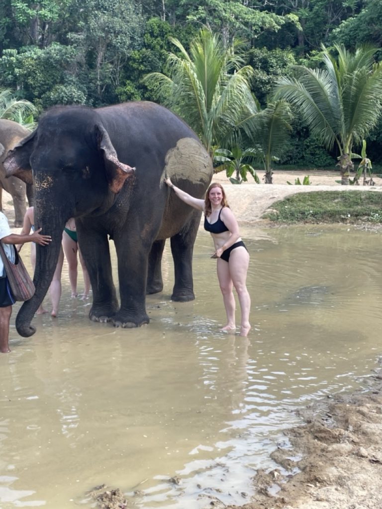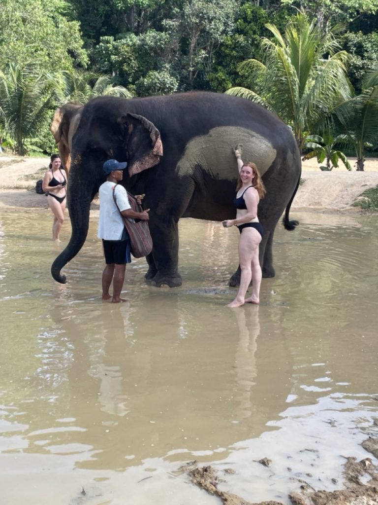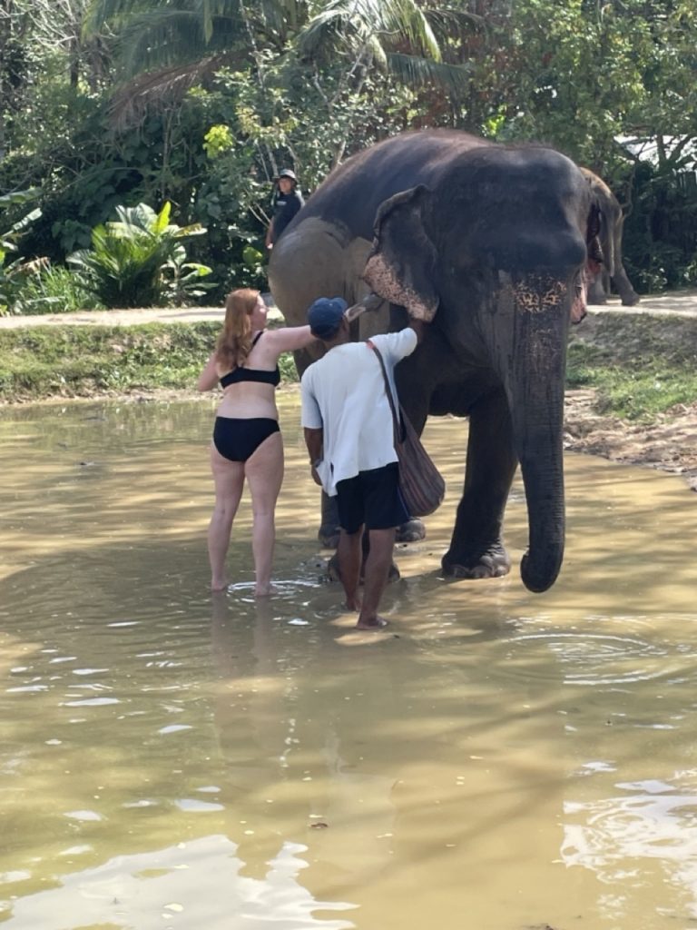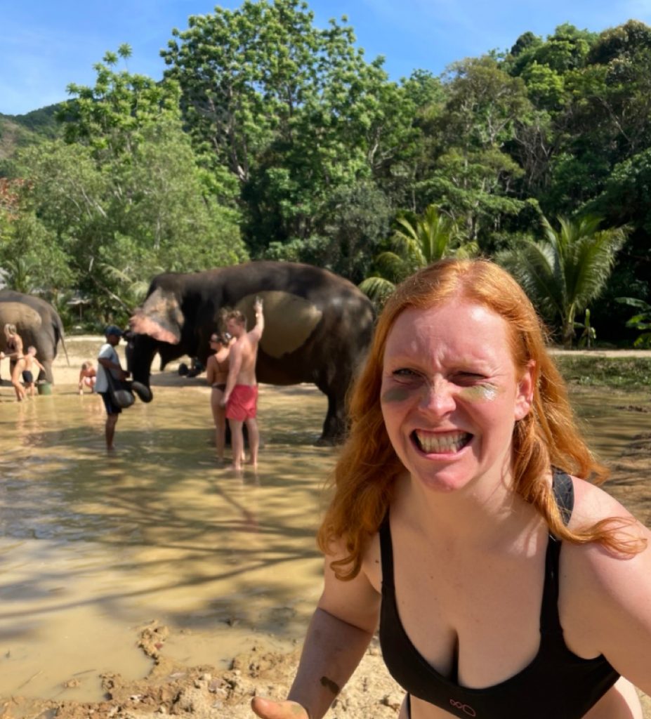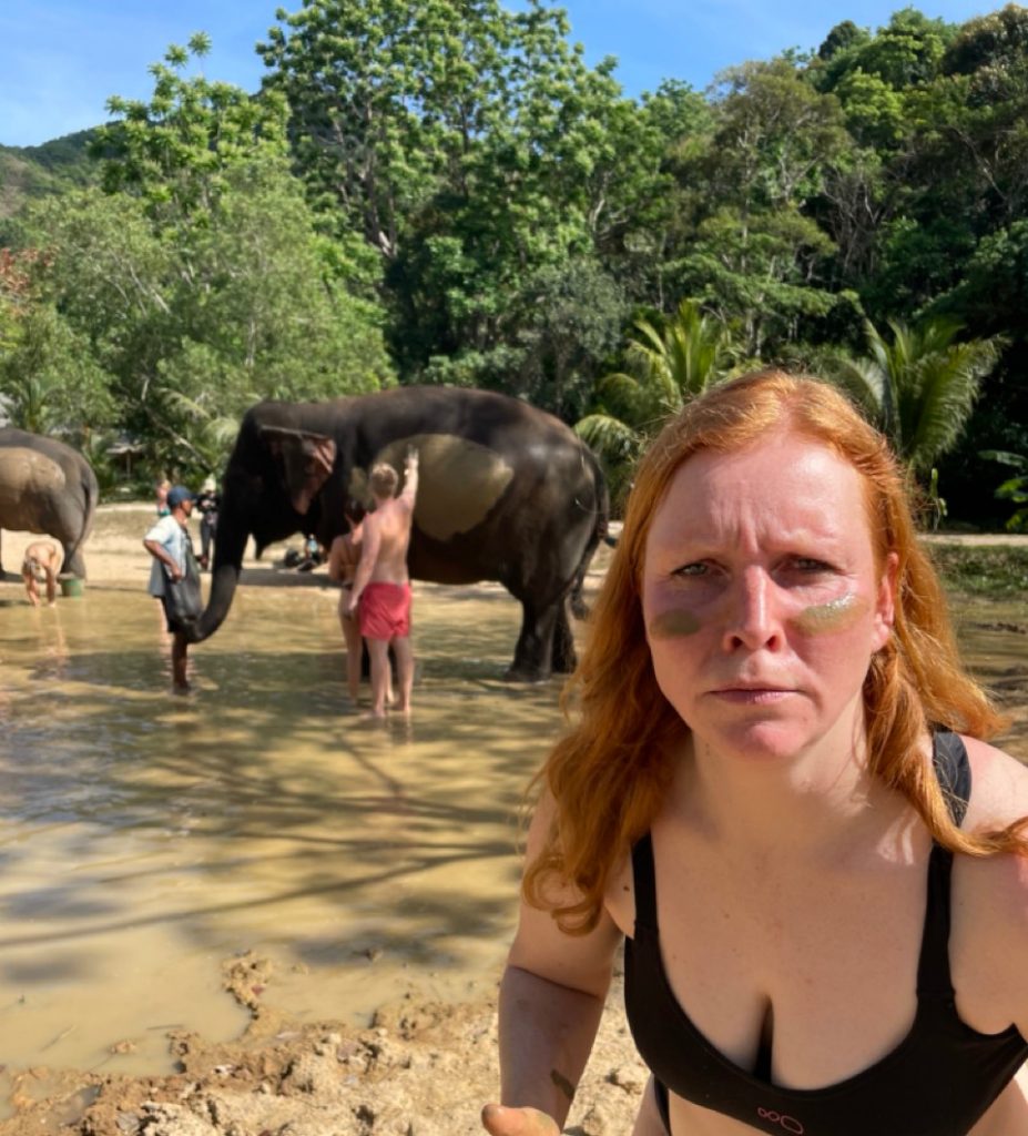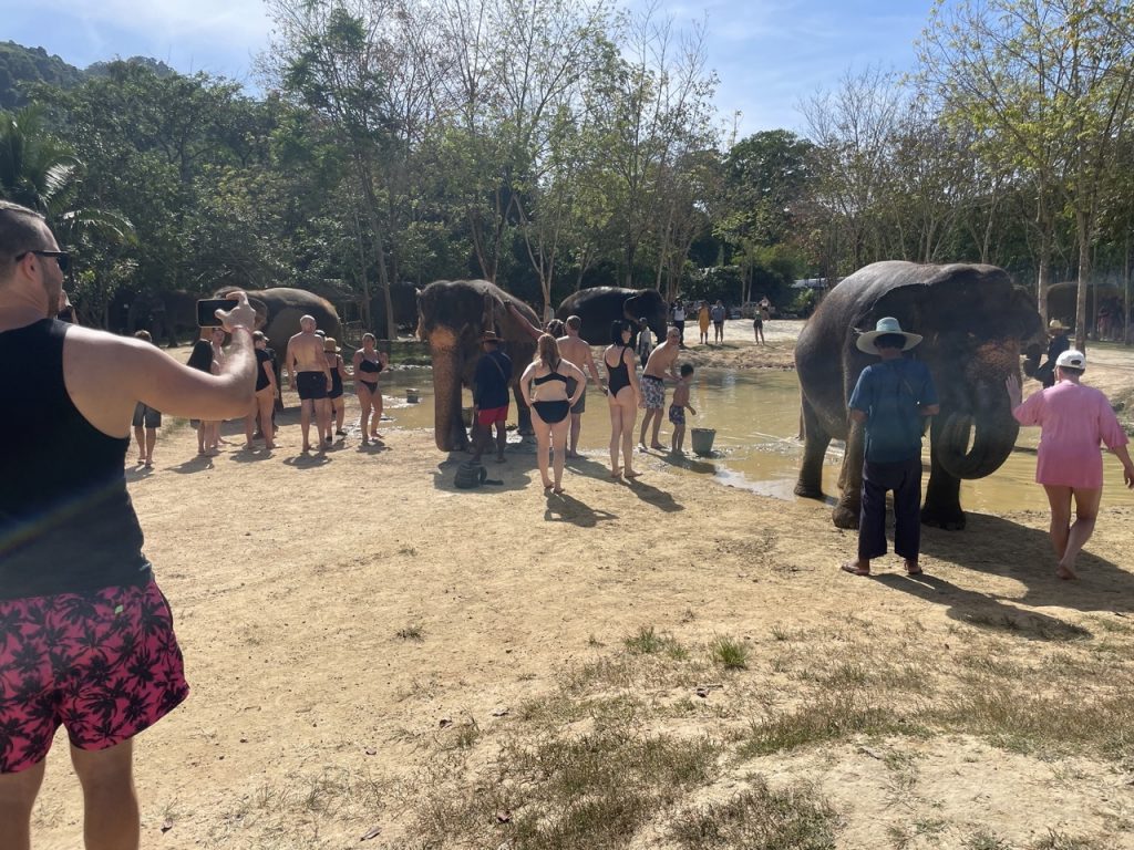 Nach der Fütterung und dem „geschichtlichen“ Abriss ging es dann in die Schlammgrube… zusammen mit den Elefanten. Und anhand der Bilder sieht man auch, wer hier in unserer Familie den größten Mut besitzt.