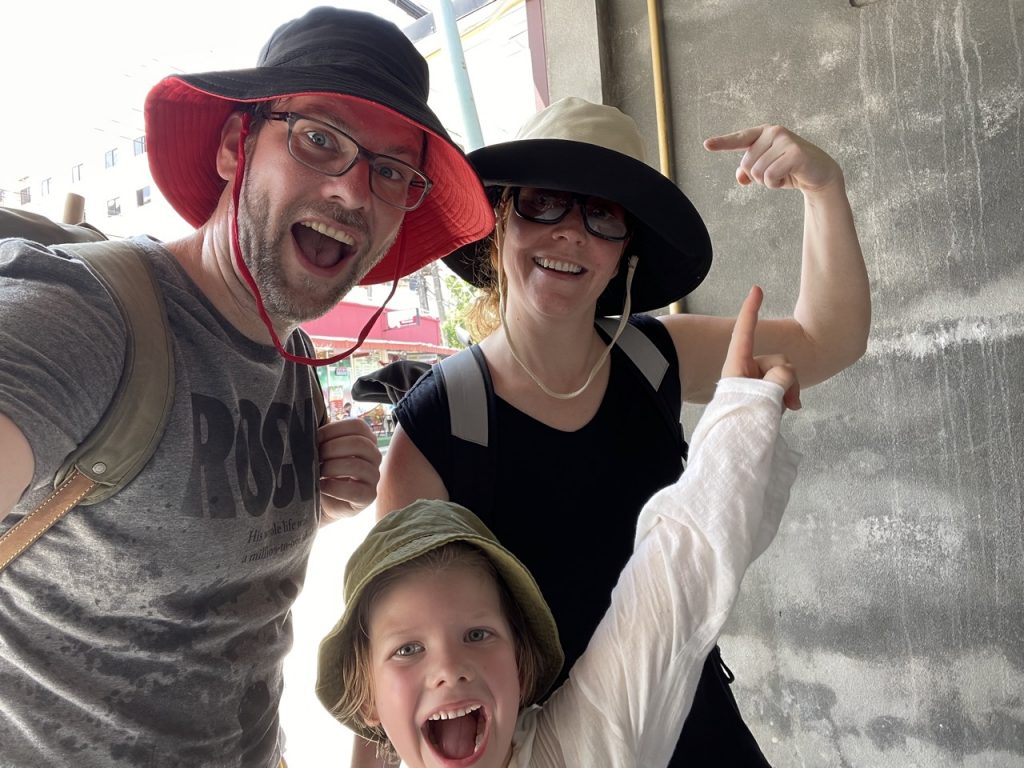 Es ging ein kurzes Stück zu Fuss zum Tuk Tuk Taxi Stand. Auf dem Weg dort hin haben wir uns noch Hüte gekauft, weil diese Sonne einfach so stark ist, dass man es nicht lange ohne aushält.