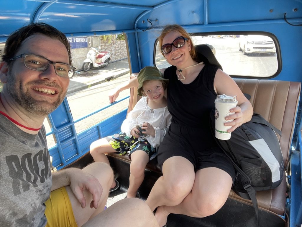 Obwohl es von außen nicht den Anschein macht, ist so ein Tuk Tuk doch recht geräumig. Dank der schmalen Bauweise kommt man auch bei dichten Verkehr ähnlich gut wie die Mopeds voran.