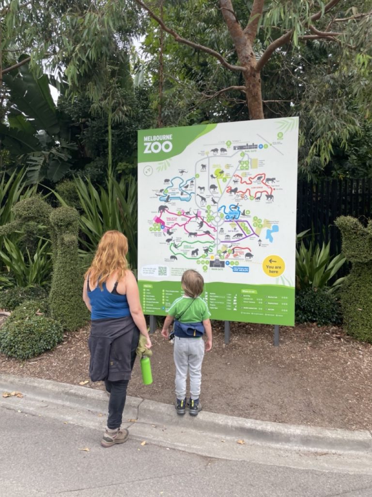 Nach erfolgreichem Frühstück ging es mit den Öffis zum Melbourner Zoo. Da unser Ziel außerhalb der kostenlosen „Free Zone“ lag, haben wir uns myki Karten besorgt. (Es gibt in Melbourne keine Fahrkarten, sondern eine Guthabenkarte, die man „aufladen und abfahren“ kann.)