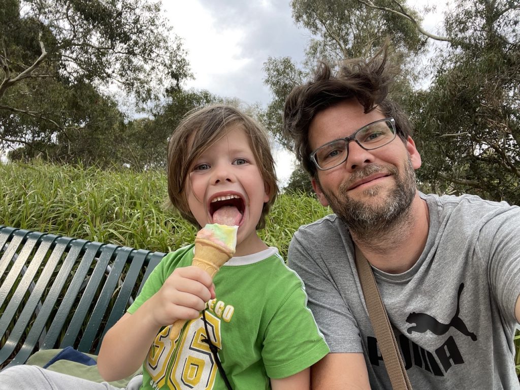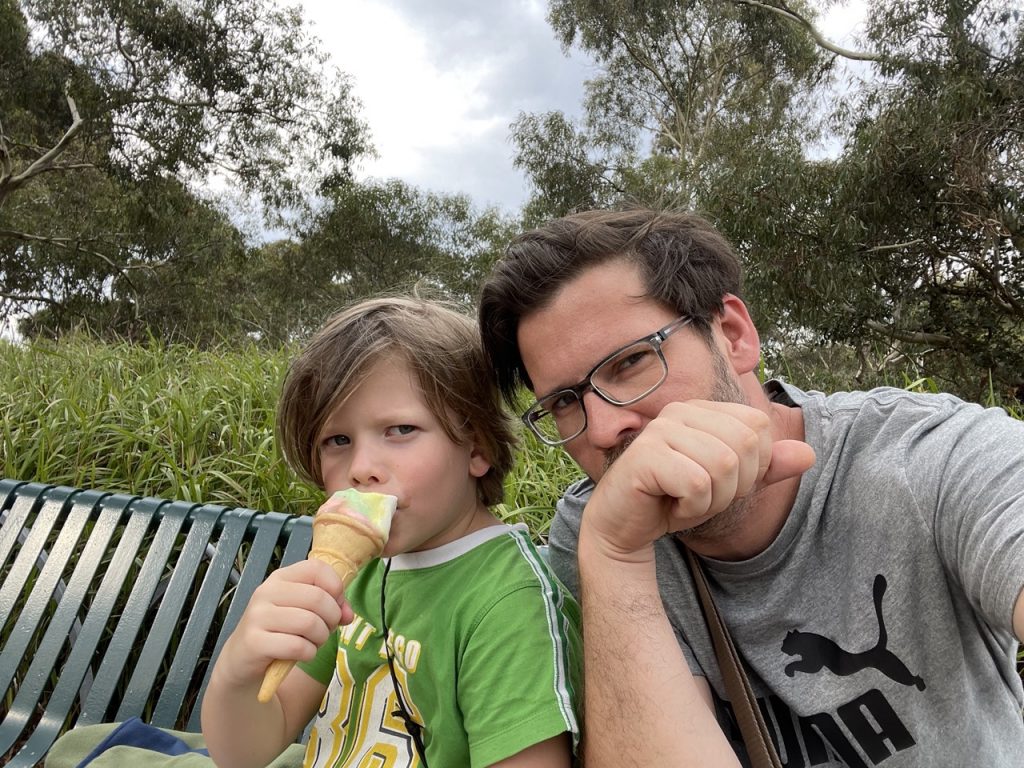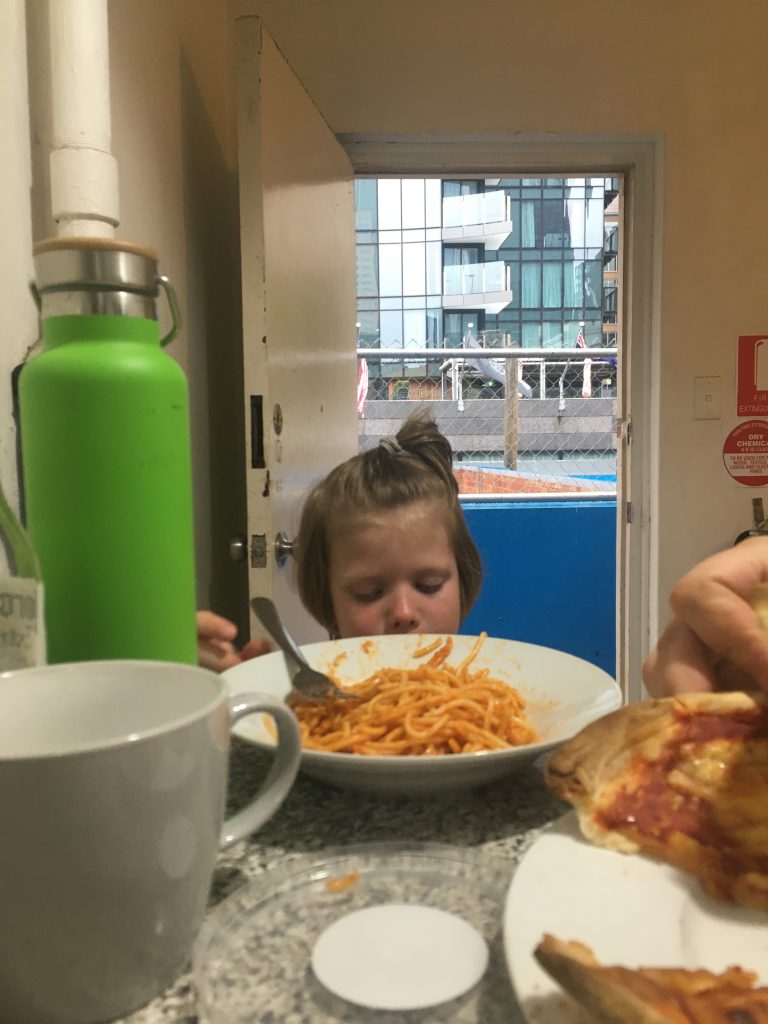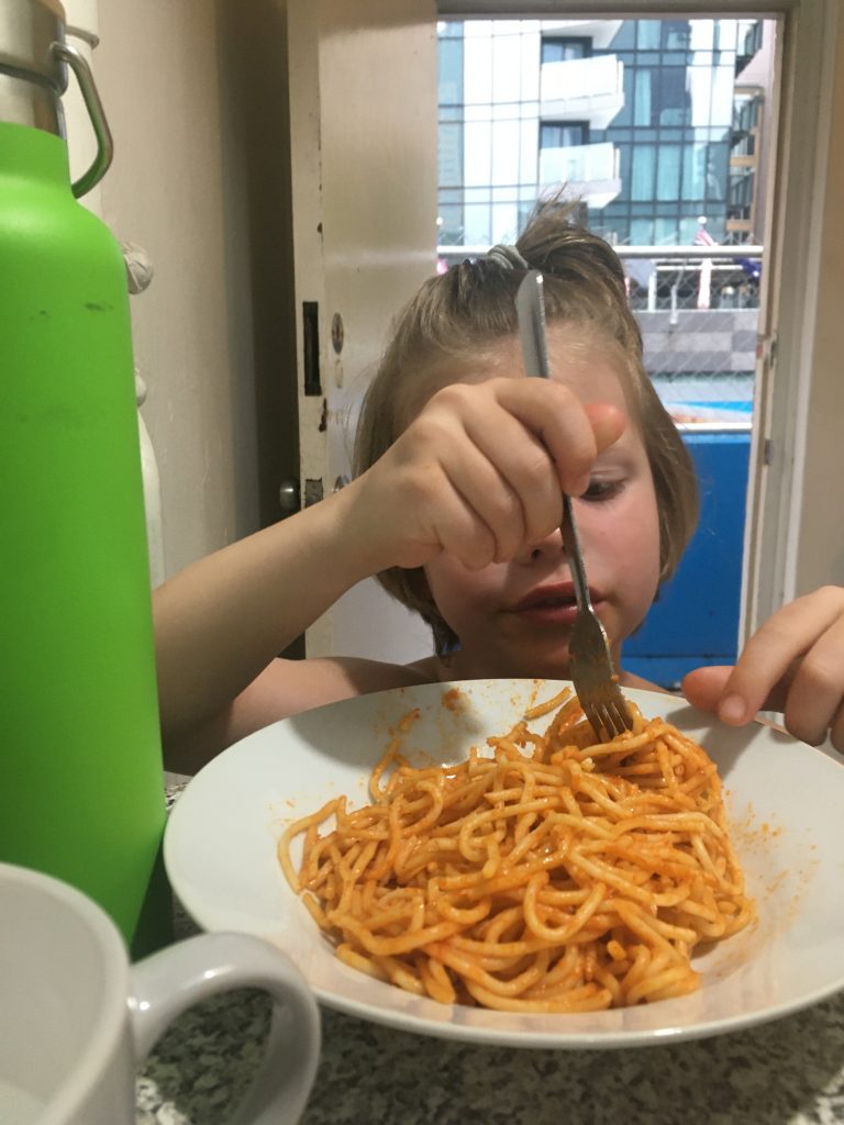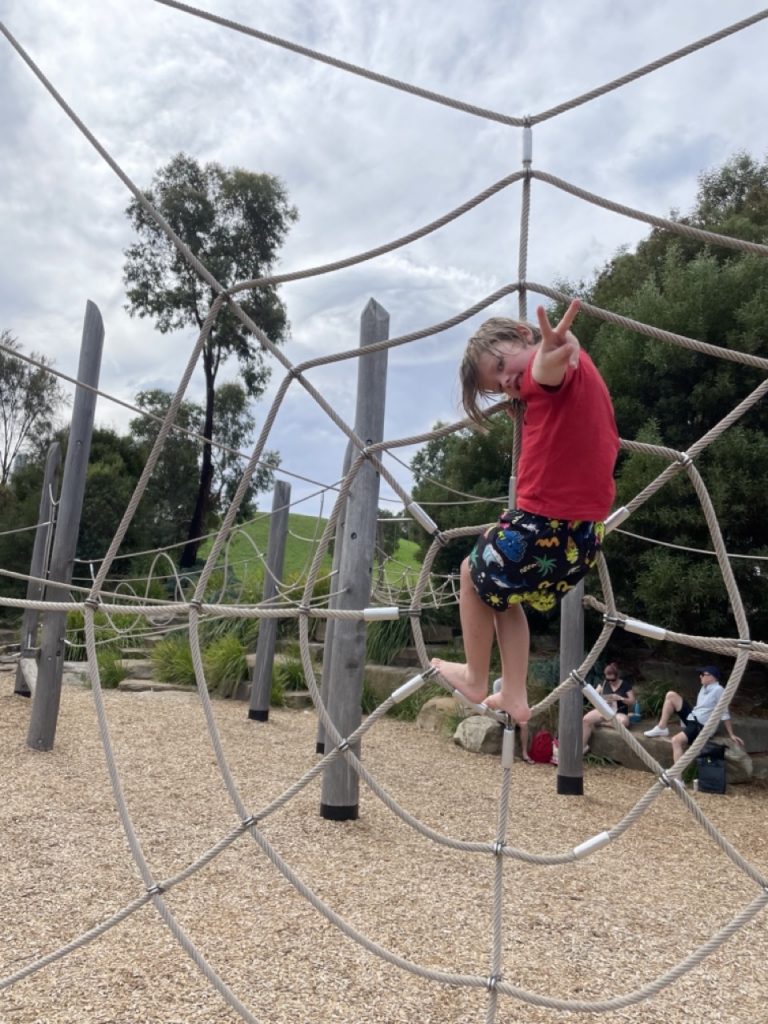 Auf dem Heimweg sind wir über einen weiteren Spielplatz gestolpert. Da Willi noch Energie hatte, legten wir hier eine „Pause“ ein. Und als wir an der Tram standen, fing es an zu regnen. Was für ein Timing! Zurück im Hotel gab es dann wieder einmal eigene Küche.