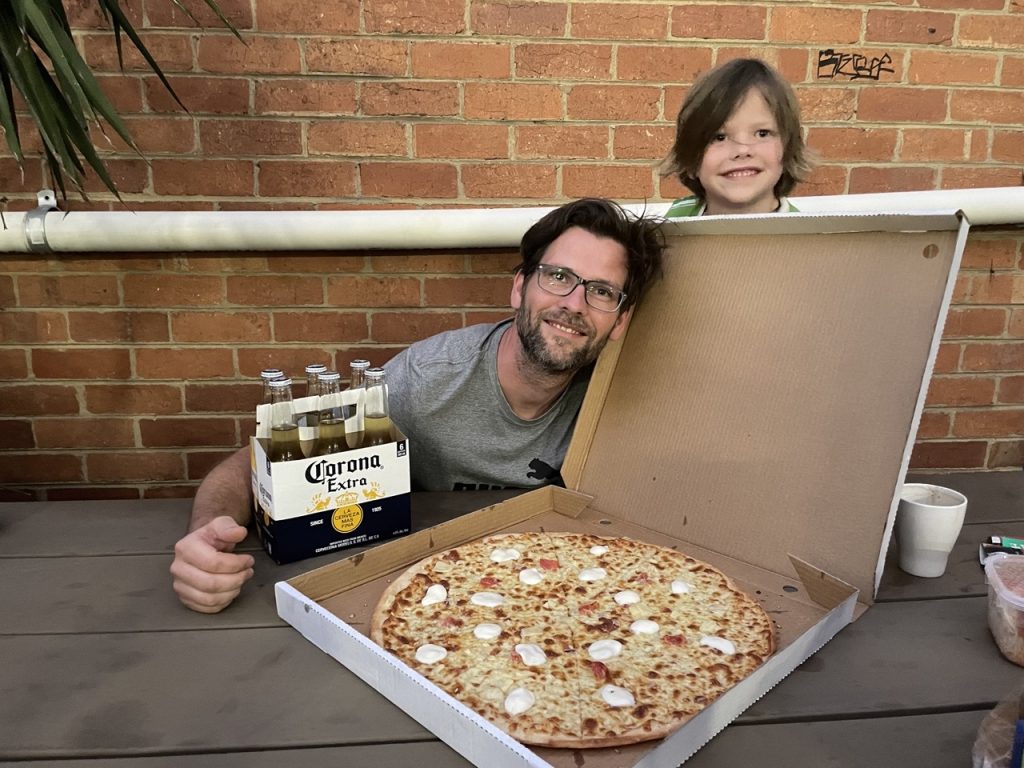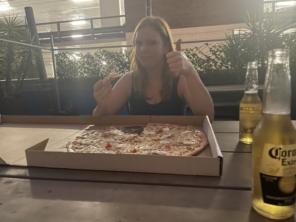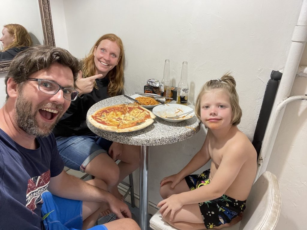 Von dem vielen Gelaufe waren wir alle ganz schön geschafft. Abends gab es dann Pizza und Bier.
