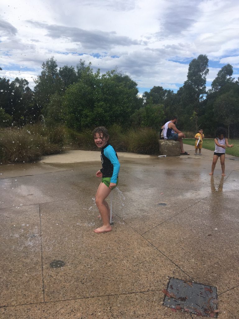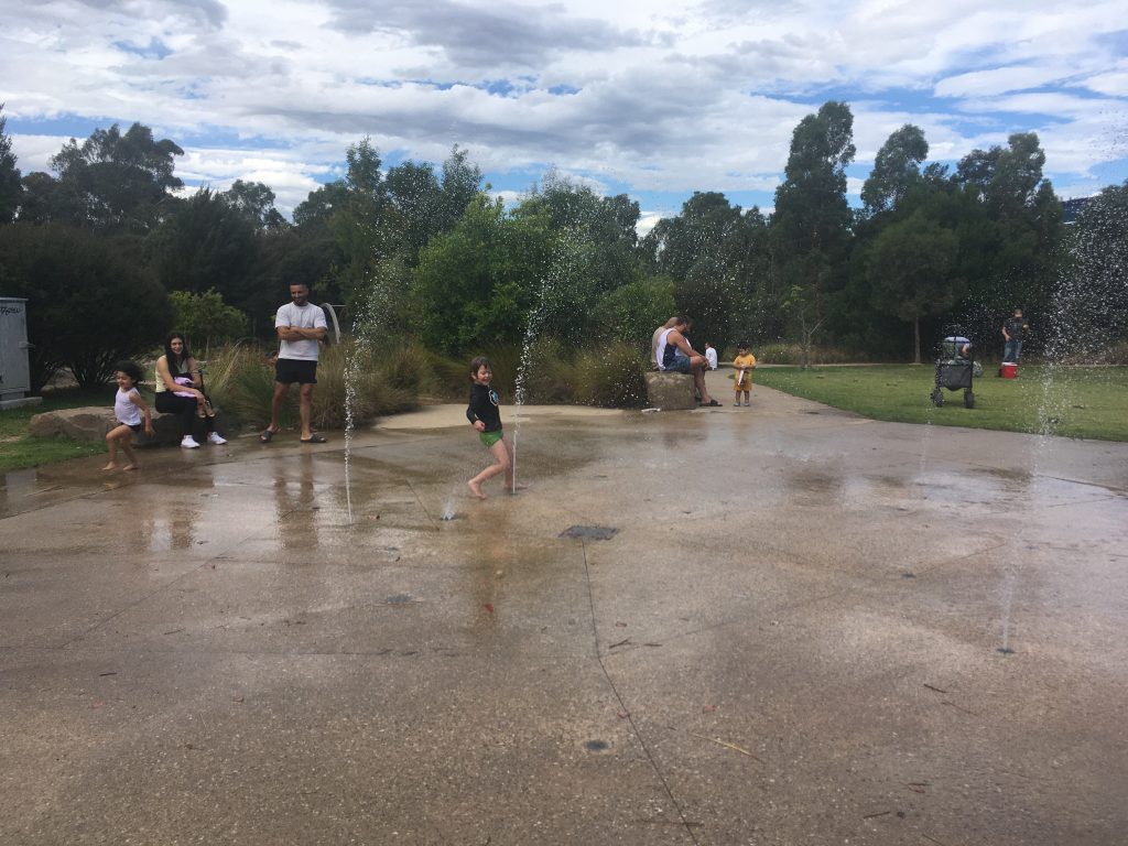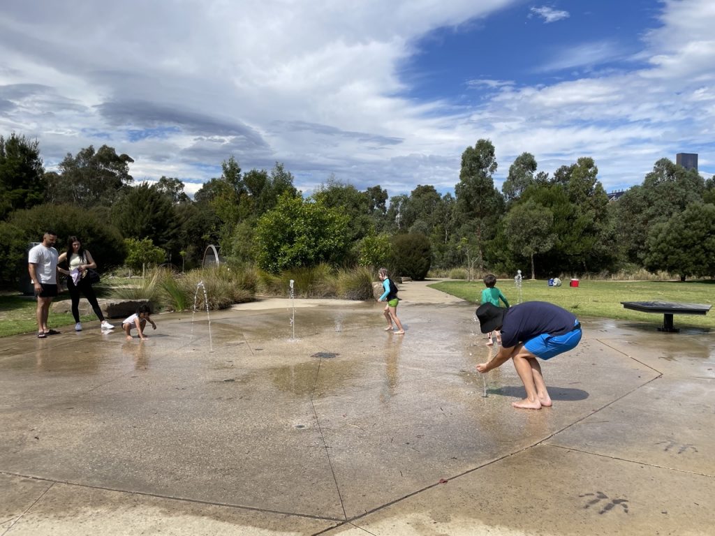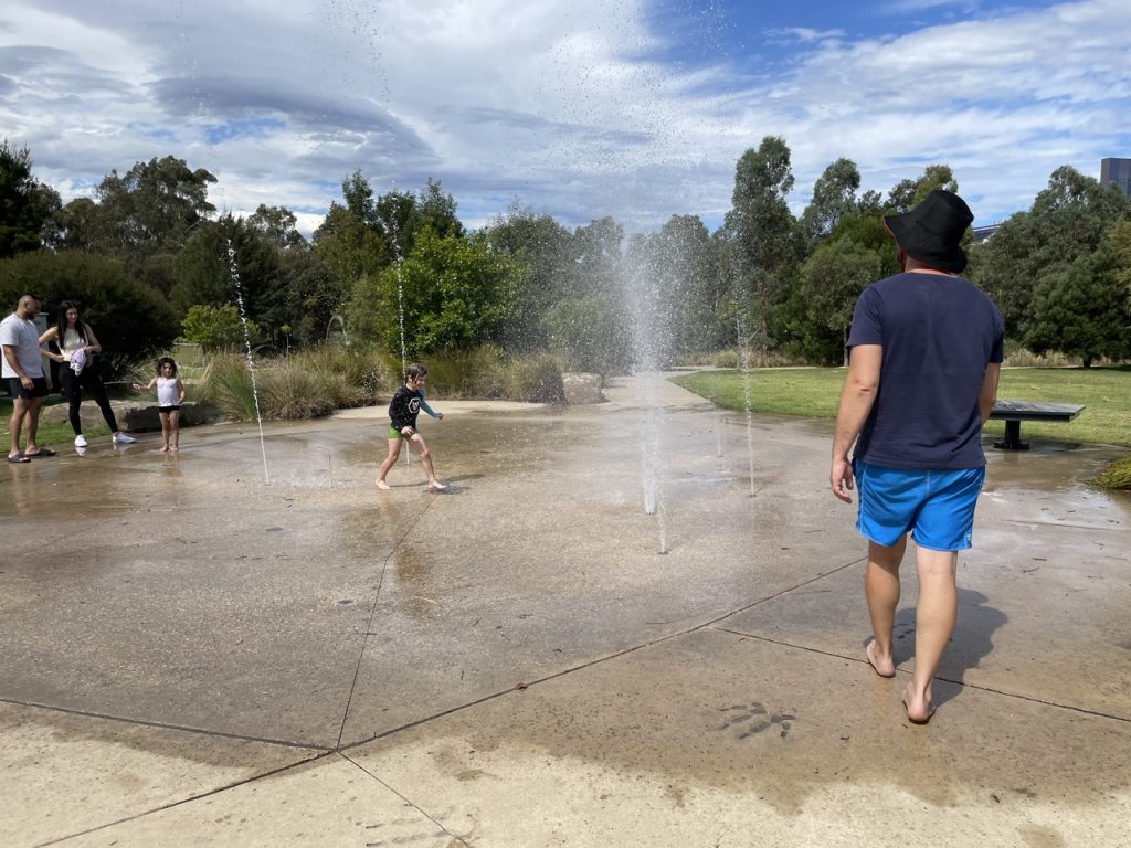 1. Sehr, sehr schön, und offensichtlich ebenso heiß. Dazu passt der „Spritzplatz“ natürlich bestens. Wunderschön, neben Euch, ist der Baum im Royal Park (der an den Gleisen).