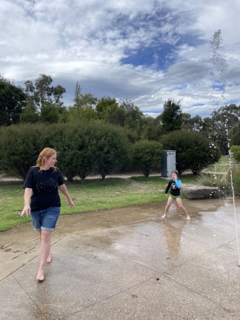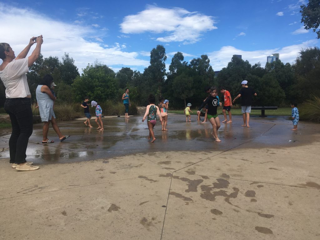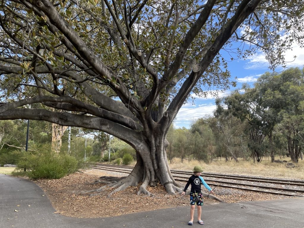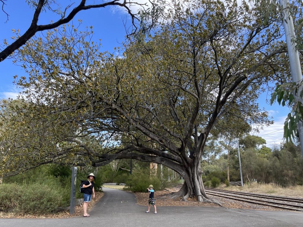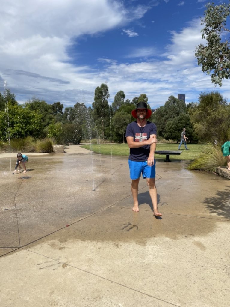 1. Sehr, sehr schön, und offensichtlich ebenso heiß. Dazu passt der „Spritzplatz“ natürlich bestens. Wunderschön, neben Euch, ist der Baum im Royal Park (der an den Gleisen).