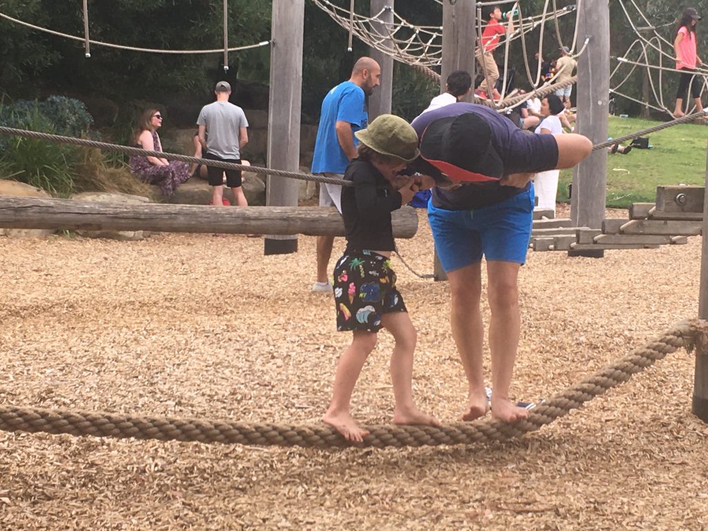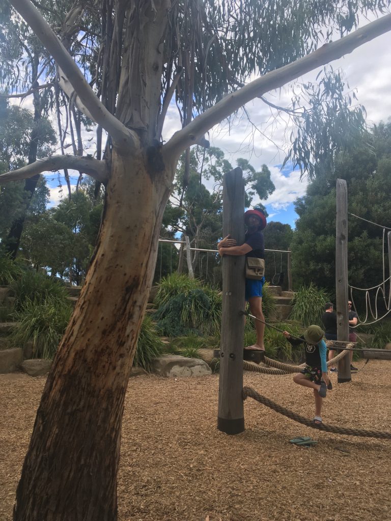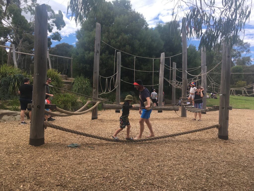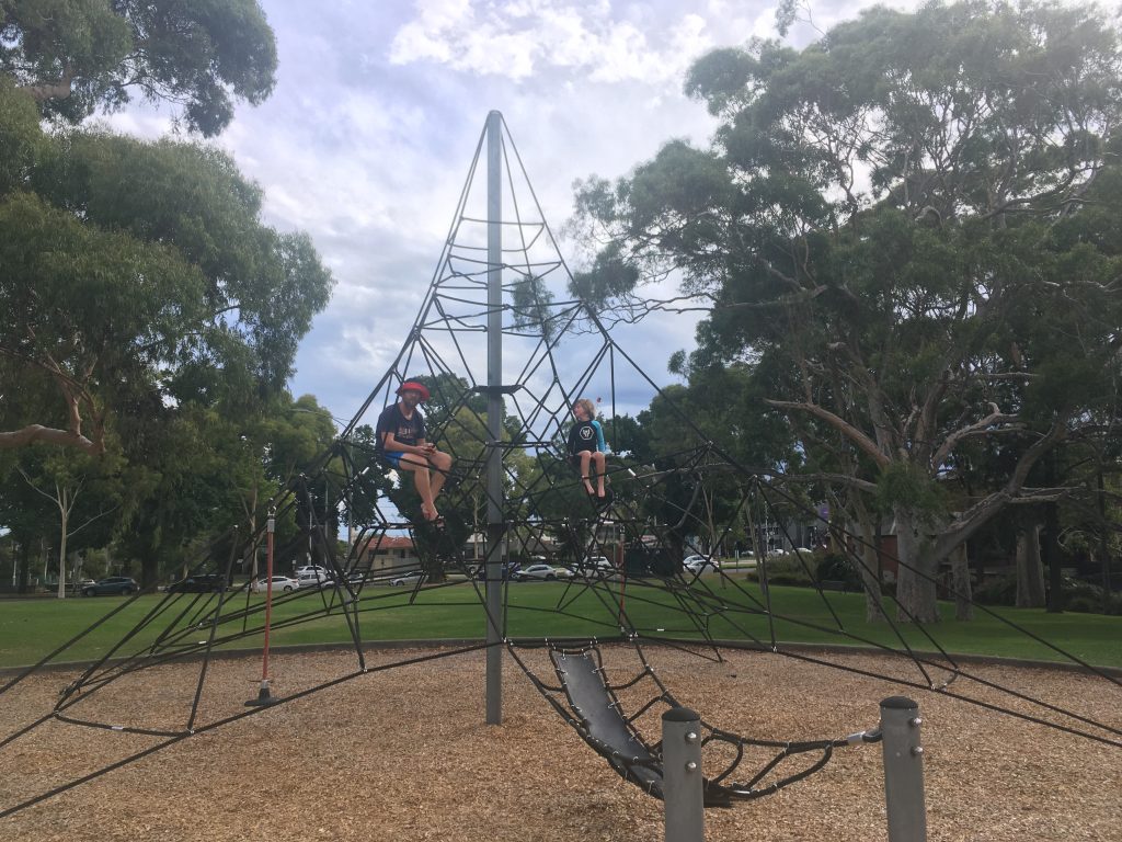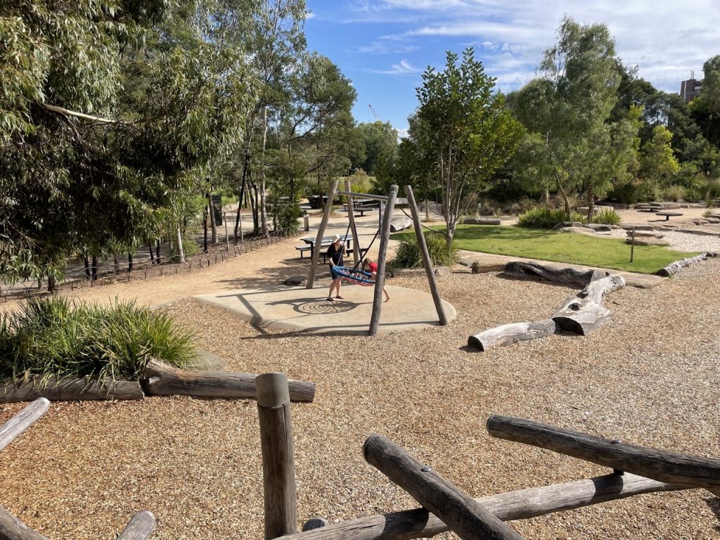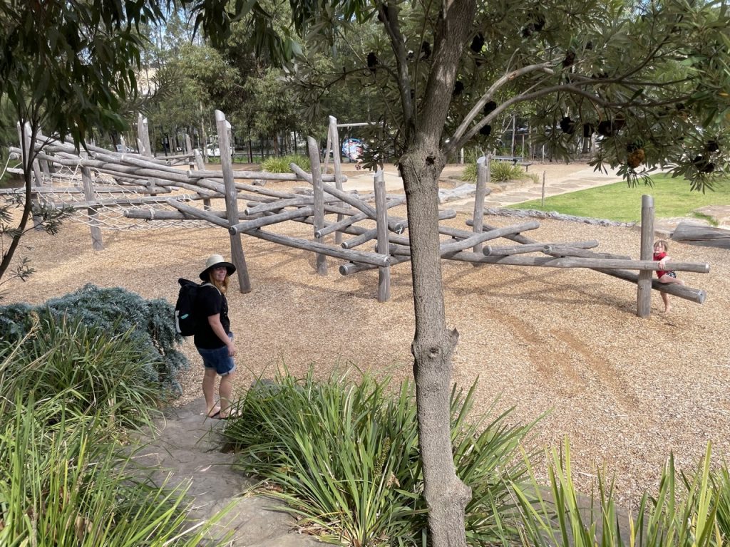 Sehr weitläufig und eher was fürs Joggen und Fahrrad fahren. Und da es an diesem Tag von den Temperaturen her eher an Thailand erinnerte, verkürzten wir unseren Spaziergang etwas und liefen in Richtung Nature Play Playground.