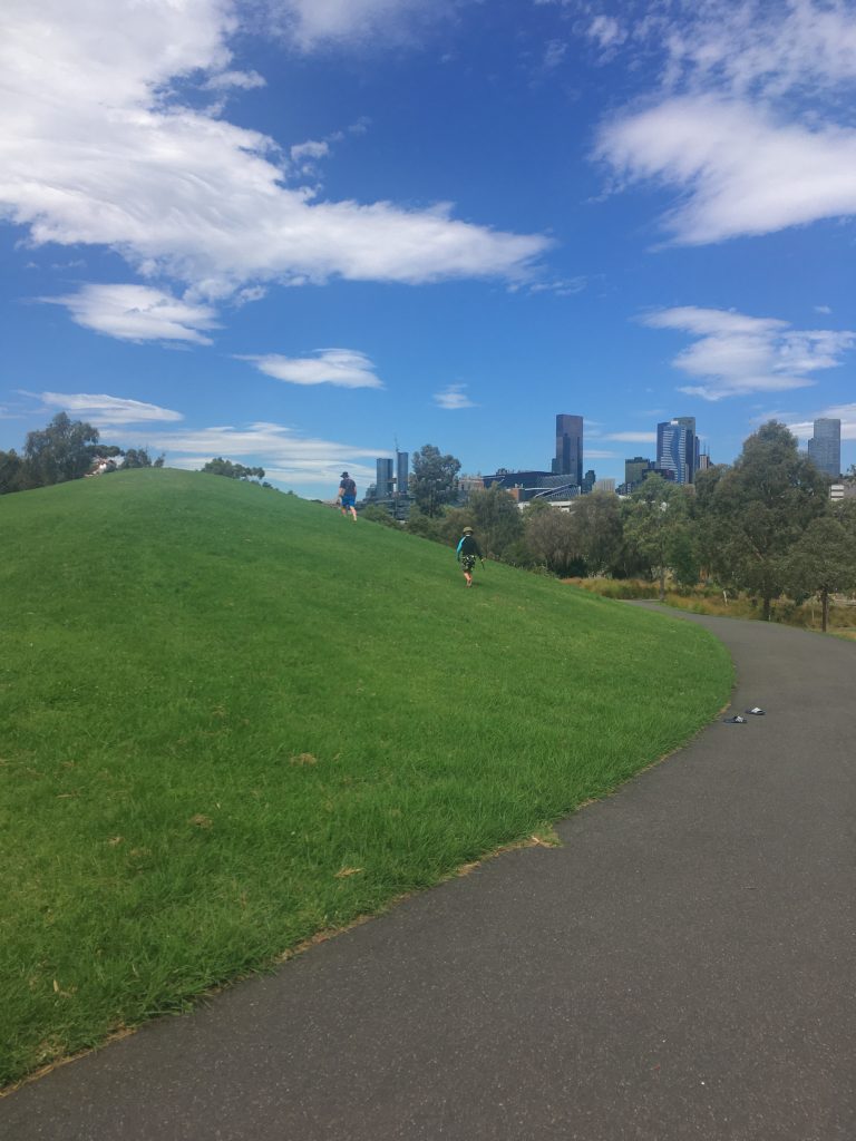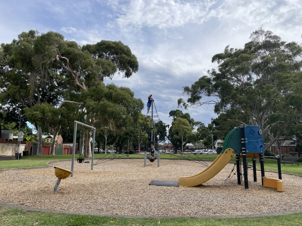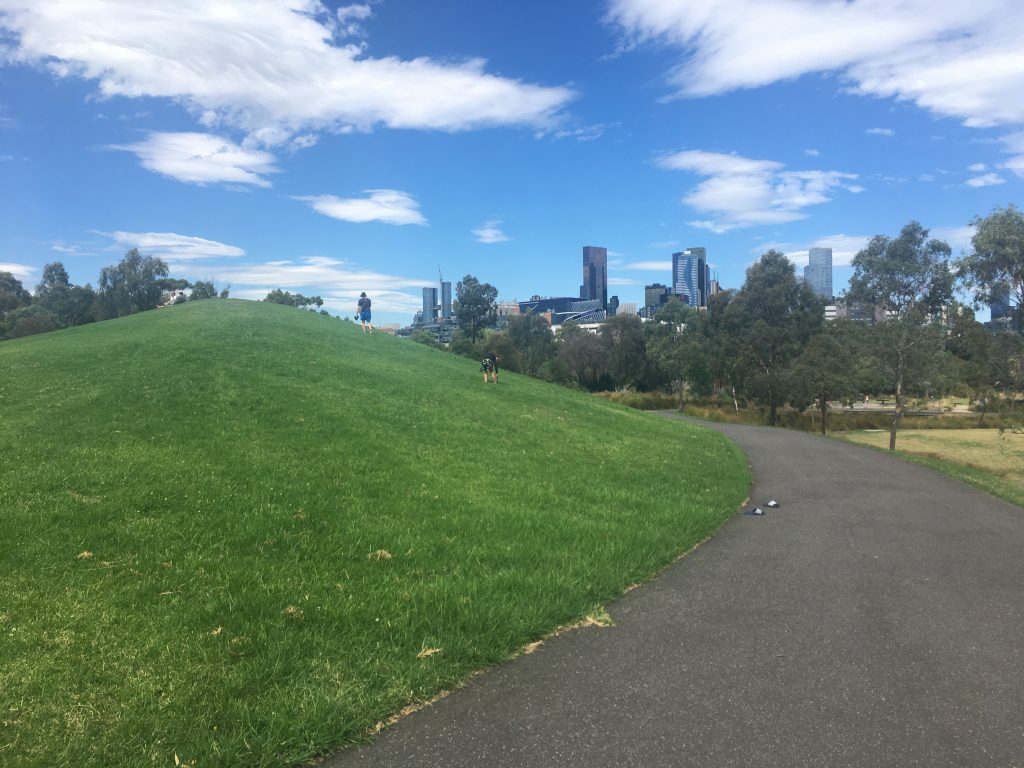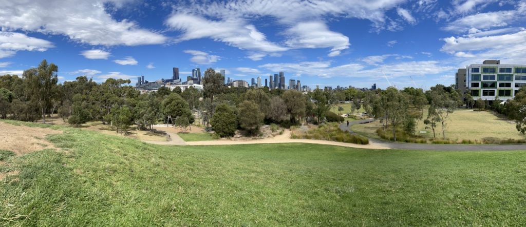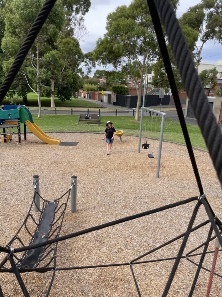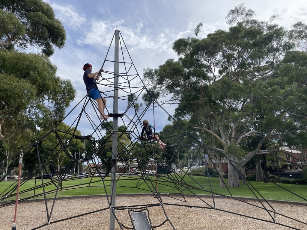 Sehr weitläufig und eher was fürs Joggen und Fahrrad fahren. Und da es an diesem Tag von den Temperaturen her eher an Thailand erinnerte, verkürzten wir unseren Spaziergang etwas und liefen in Richtung Nature Play Playground.
