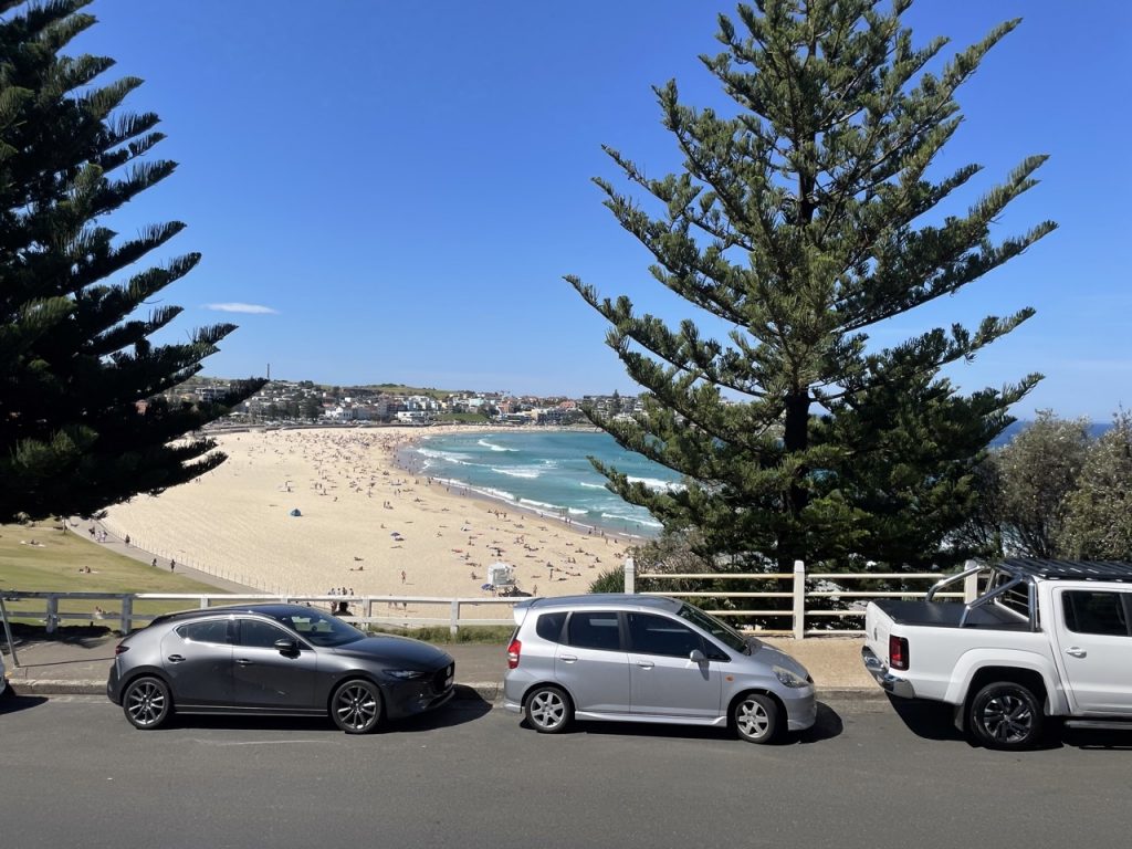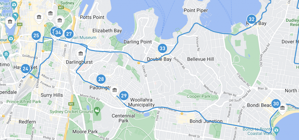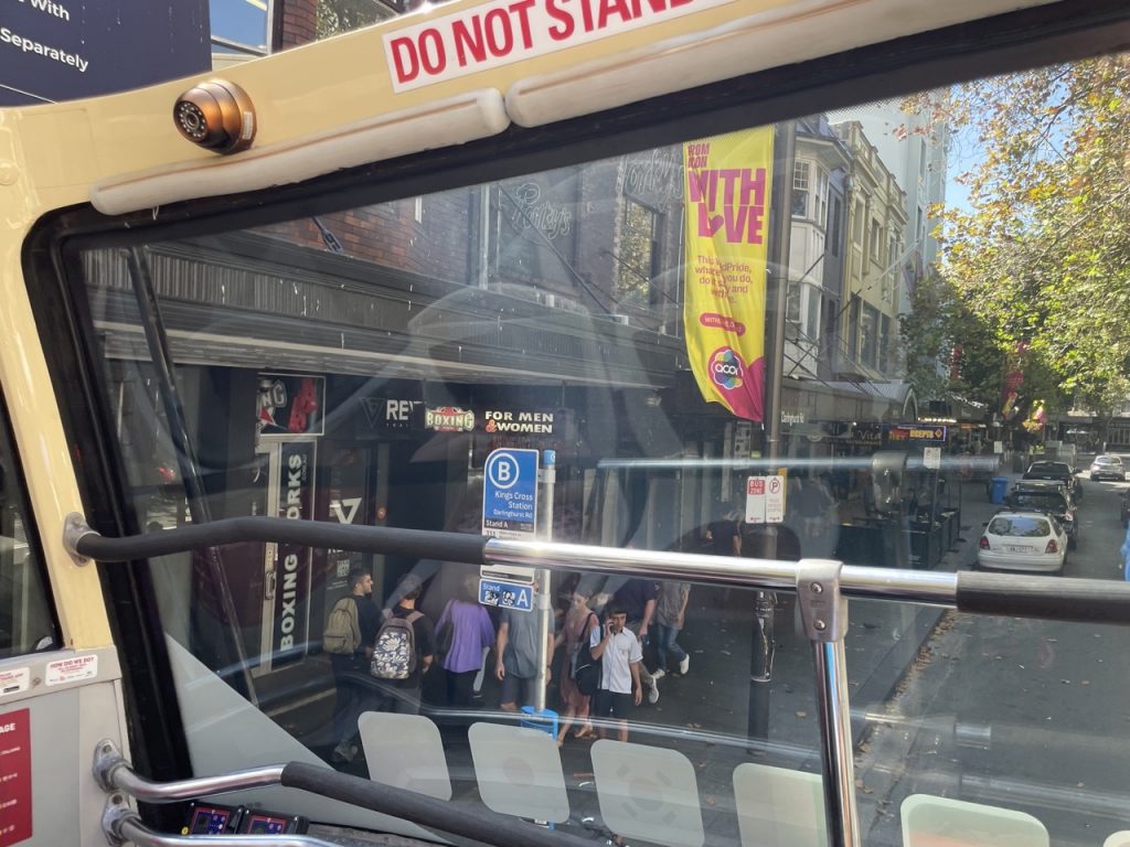 Das Tagesziel für unseren zweiten Tag war der Bondi Beach. Und da unser Bus-Ticket noch Gültigkeit hatte, konnten wir den Hinweg auf der blauen Route nehmen. Eingestiegen sind wir an der 25, ausgestiegen an der 30. Diesmal ist Willi nicht eingeschlafen.