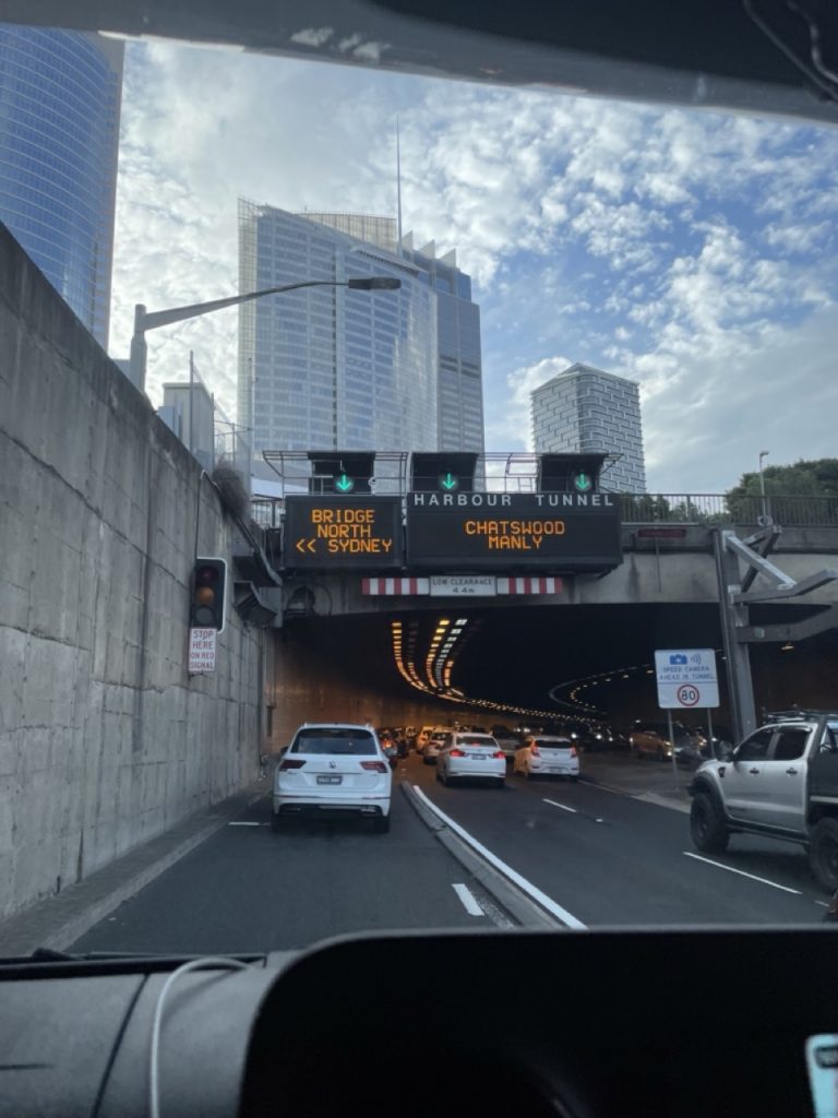 Da unser Campingplatz im Norden Sydneys lag, mussten wir einmal quer durch die Stadt, um dort hin zu gelangen. Interessante Verkehrsführung mit vielen Brücken und Tunneln.