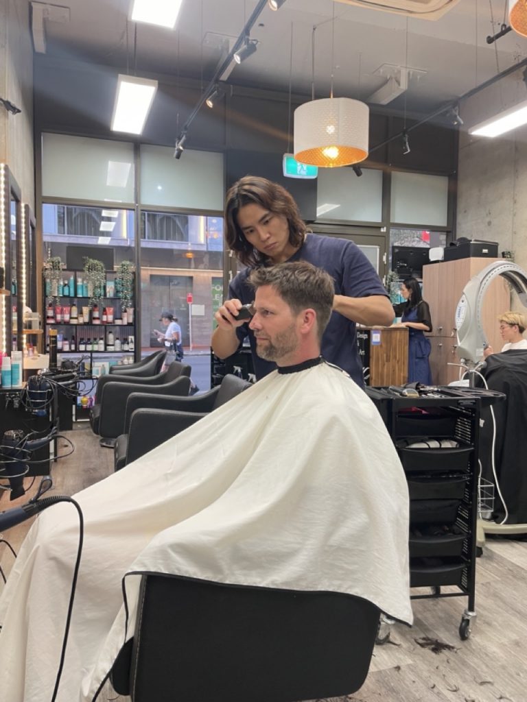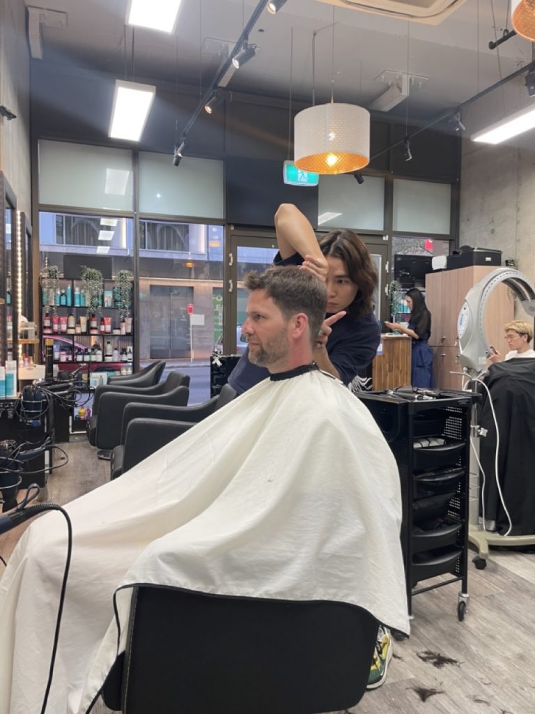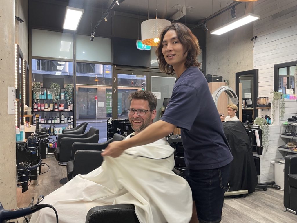 Da wir hier in Australien dem Äquator immer näher kommen steigen auch die Temperaturen. Und da man bei 34° einfach schnell ins Schwitzen kommt, wollte ich gern meine Haare kürzer haben. Allerdings muss ich mich bei sowas immer ein wenig überwinden. Nicht umsonst hatte ich bisher in meinem Leben zwei Friseure. Meinen Vater und bei Roland Schere 4 in Karlshorst. Allerdings waren Melli und Willi so hartnäckig, dass sie mich förmlich in den Laden gezogen haben. Im Ergebnis habe ich mir also in Sydney bei einem gebürtigen Südkoreaner die Haare schneiden lassen. Bin sehr zufrieden mit dem Resultat.