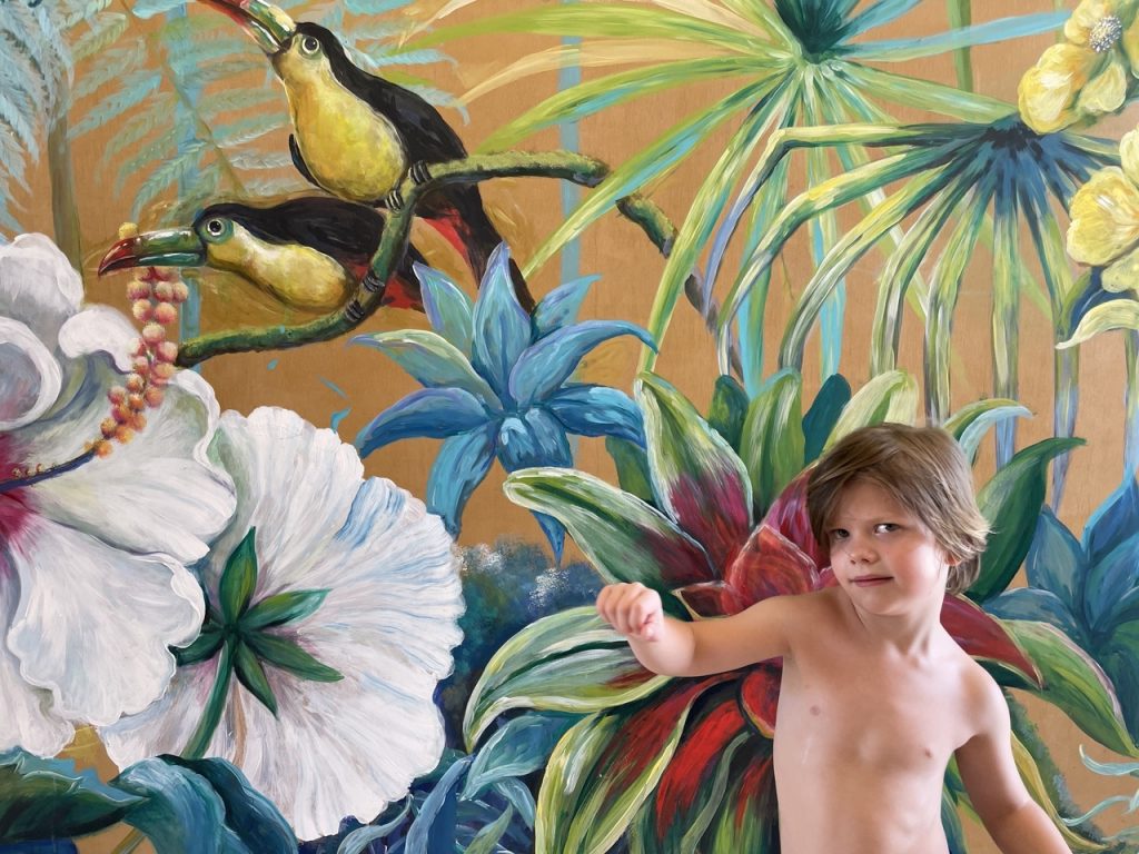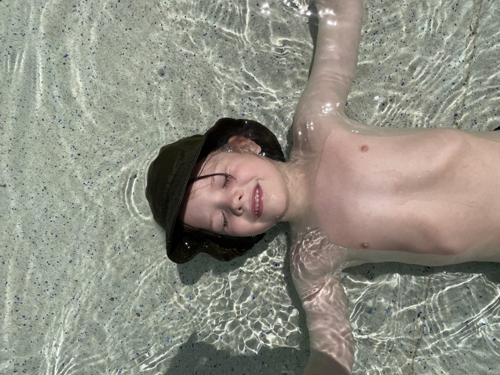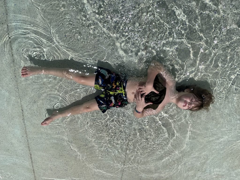 Und hier können wir auf der „kleinsten“ Rutsche rechts im Bild den Nachwuchsturmspringer bei seinem allerersten Sprung sehen. (Zugegeben ist da noch viel zu tun, aber der Anfang ist gemacht.)