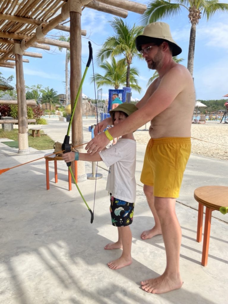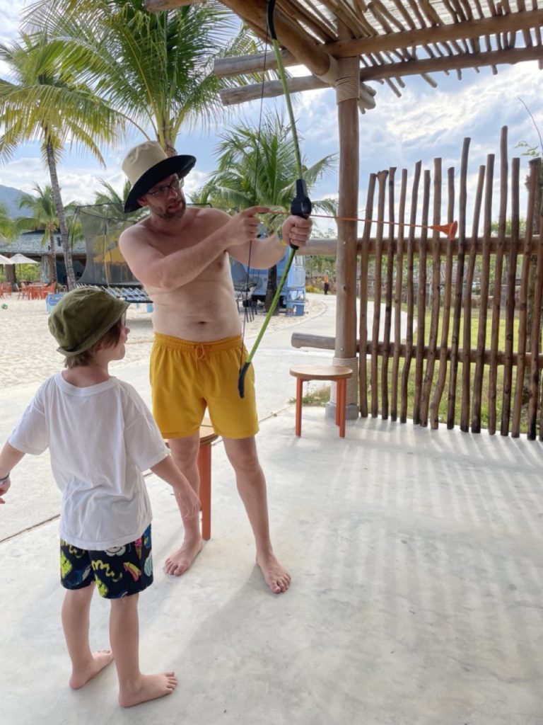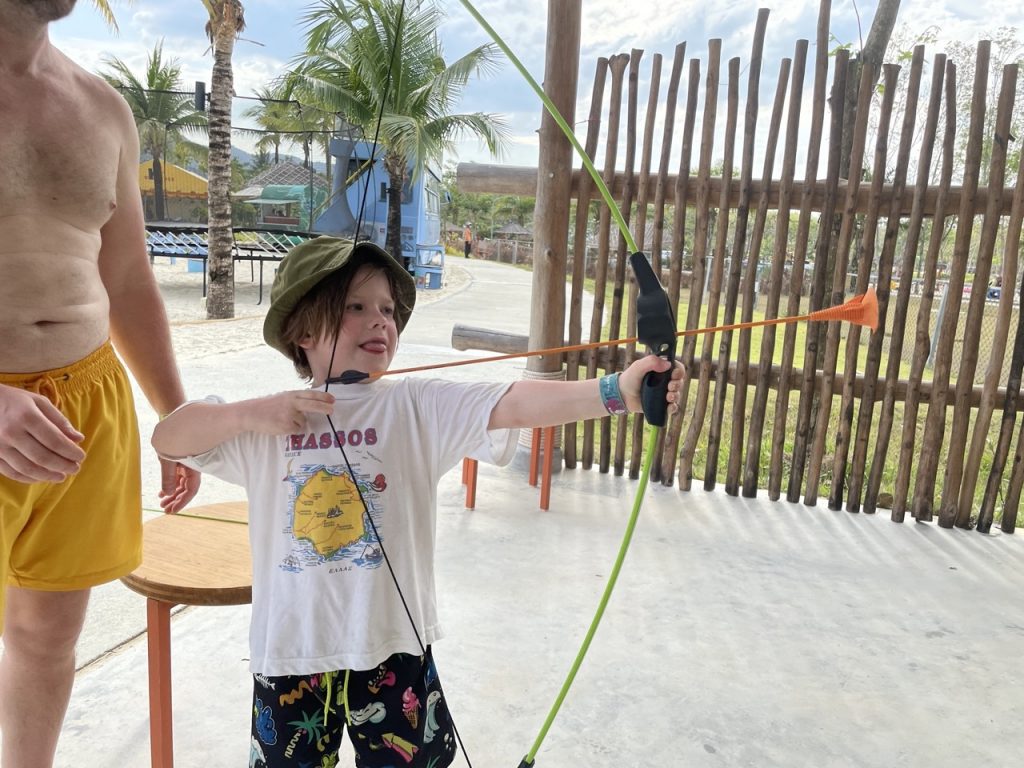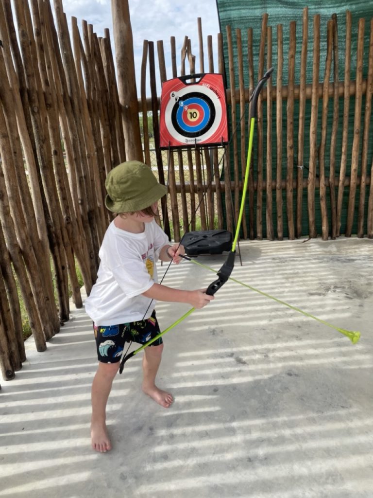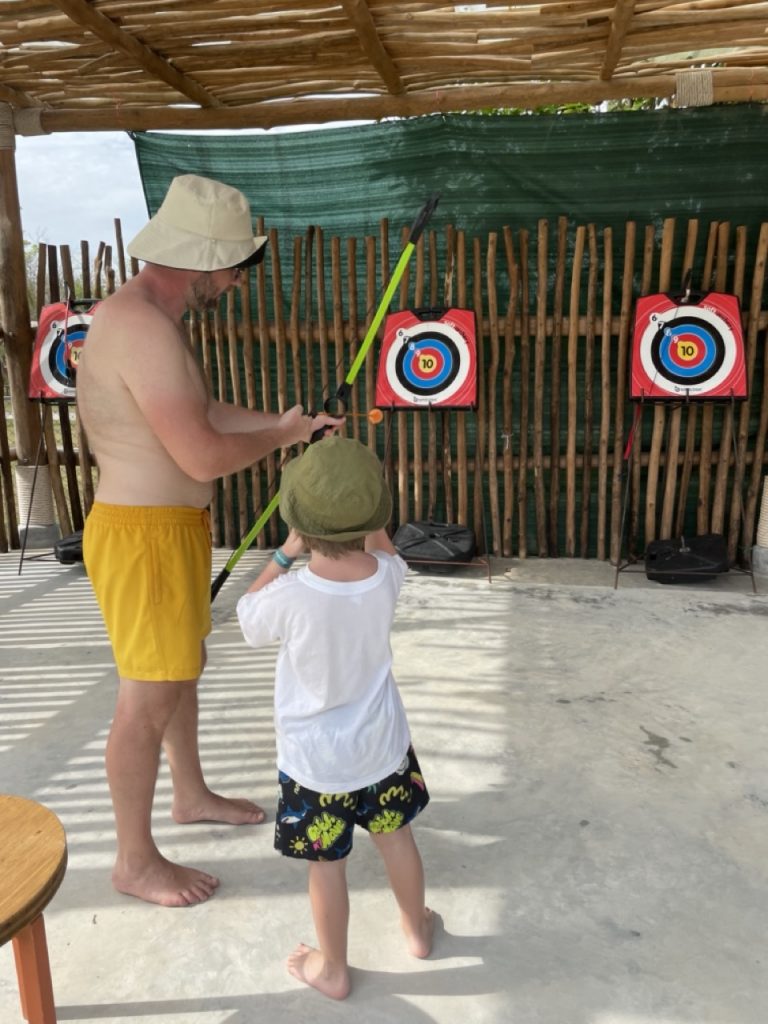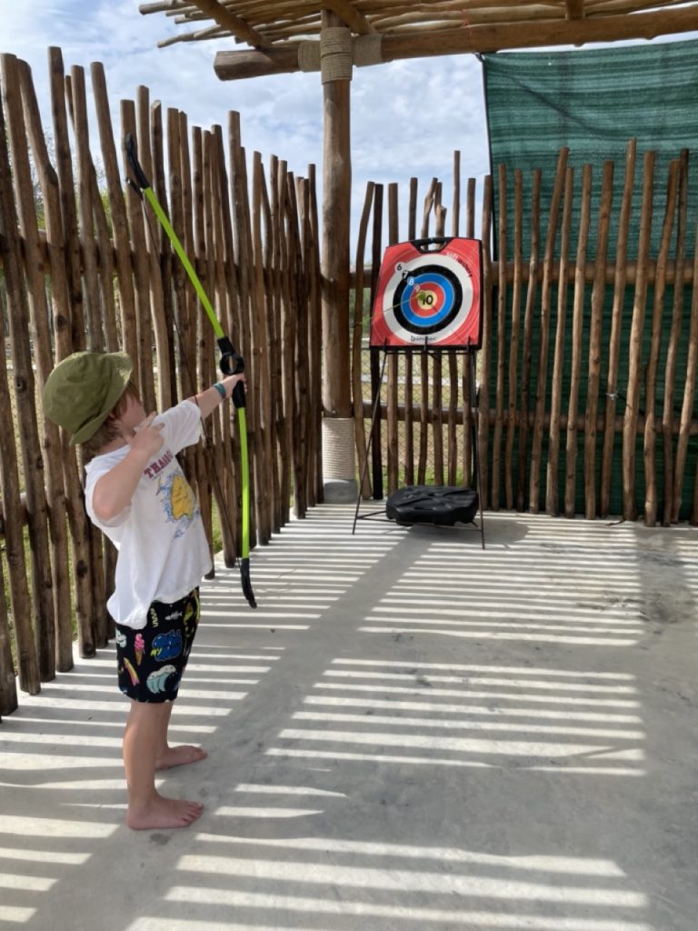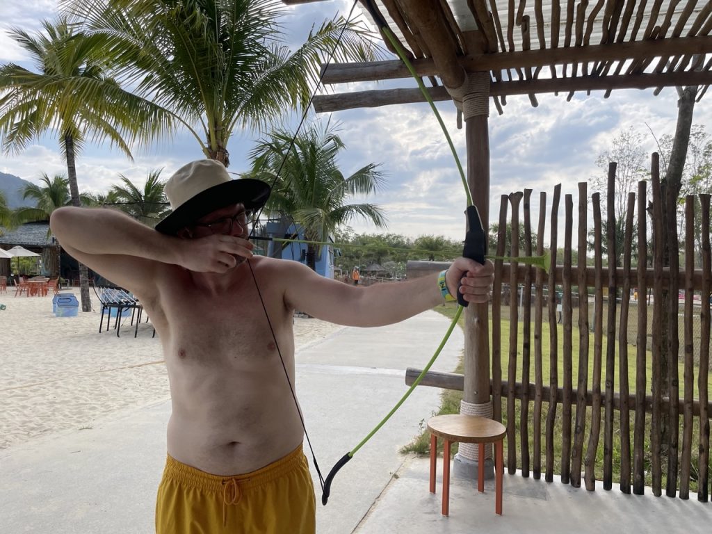 Hier sehen wir unseren Nachwuchsbogenschützen beim Training für die kommenden Wettkämpfe mit seinem weltweitbekannten und überaus geduldigen Trainer.
